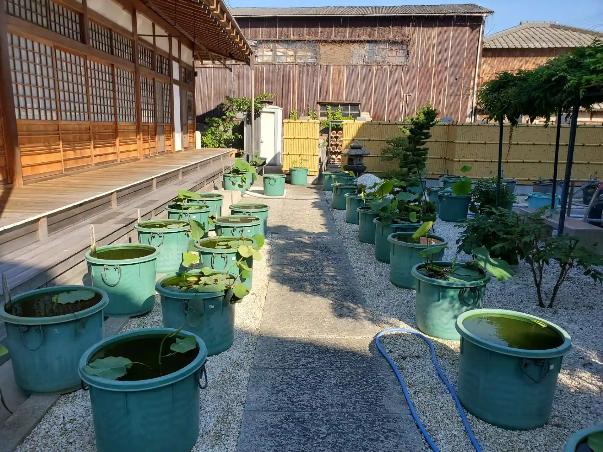 境内には様々な種類の蓮の鉢が置かれていました。