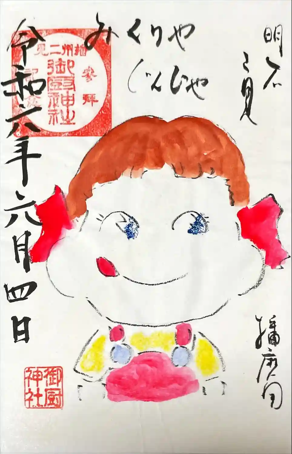 ペコちゃんの直書き御朱印です。