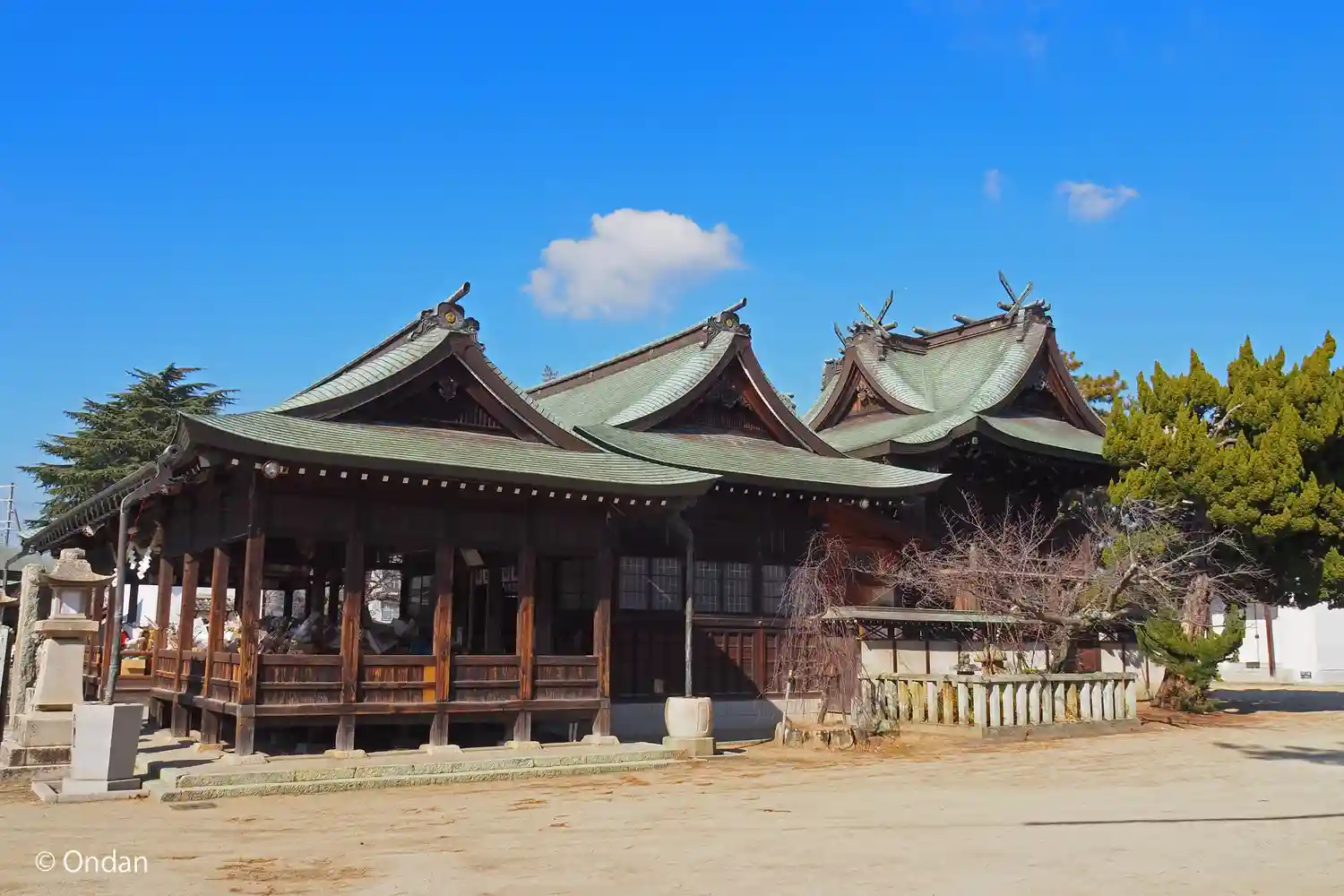 明石市の東二見に鎮座する境内がとても開けた印象の神社です。