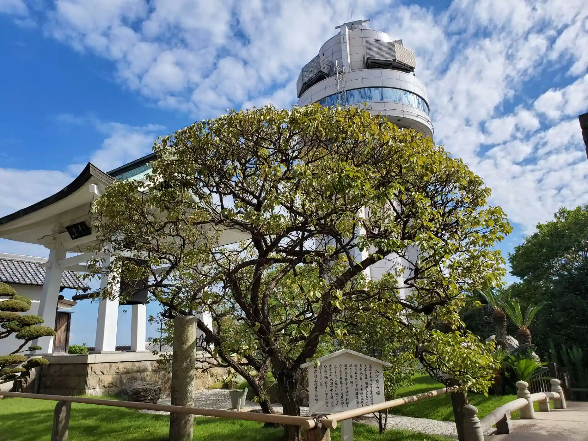 すぐ南側には明石市立天文科学館があり、境内を日本標準時子午線が縦断しています。
