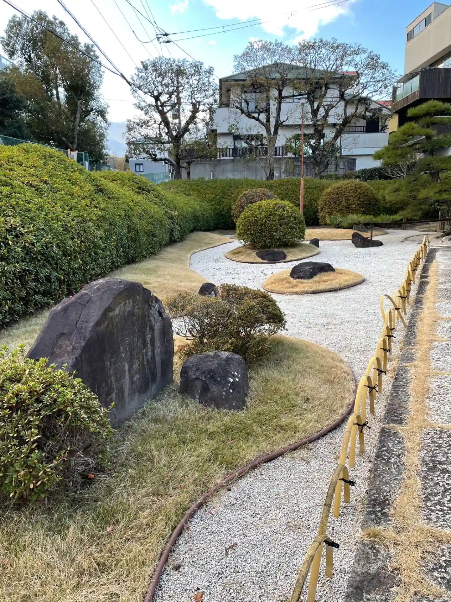 そんな妙見社にはツツジの刈込みが特徴的な枯山水庭園があります。