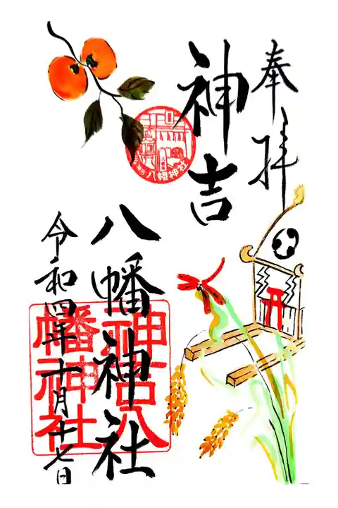 神吉八幡神社の2022年10月の月替り御朱印「柿と神輿」です。