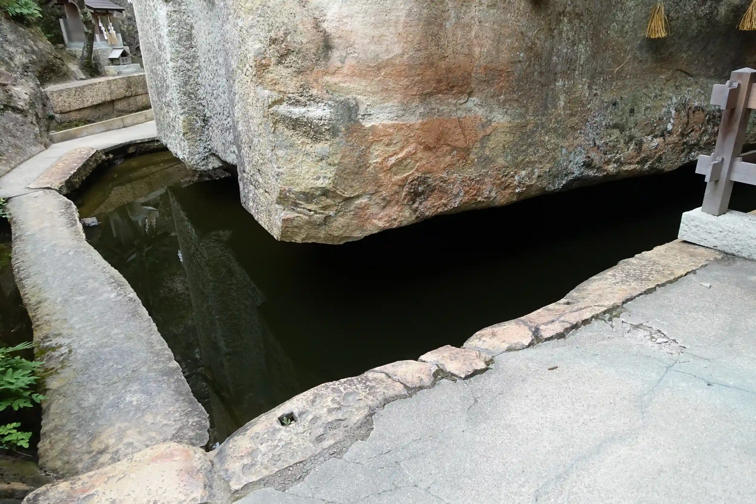 ご神体は浮いているように見える事から浮石とも言われる「石の宝殿」で、大穴牟遅と少毘古那の二柱が国家安寧の為に造り、宮殿としては未完成の状態という事ですが今でも二柱はこの石の宝殿に入られているそうです。