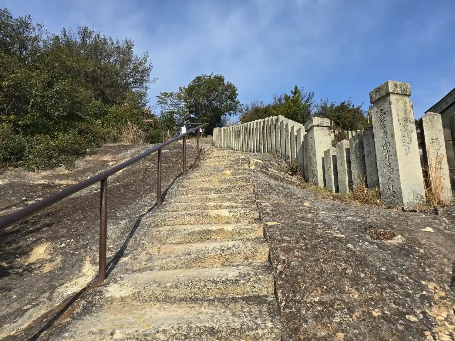 この階段を登って岩山の頂上まで行きます。