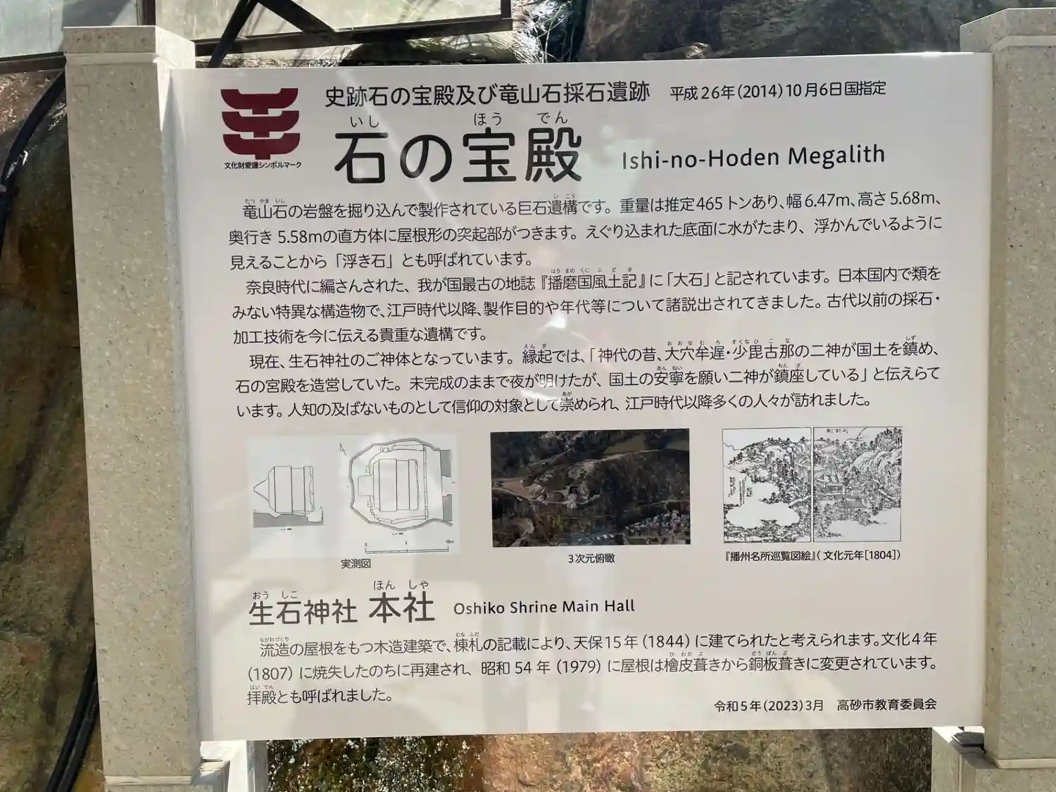 「石の宝殿」の石の案内標。