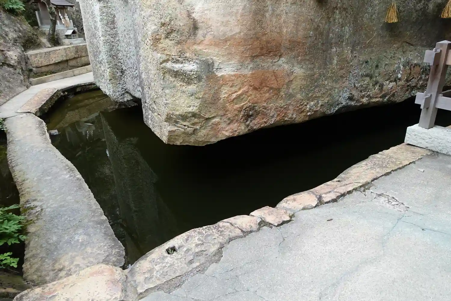 御神体は水に浮いているように見える石造物(鎮の岩室)