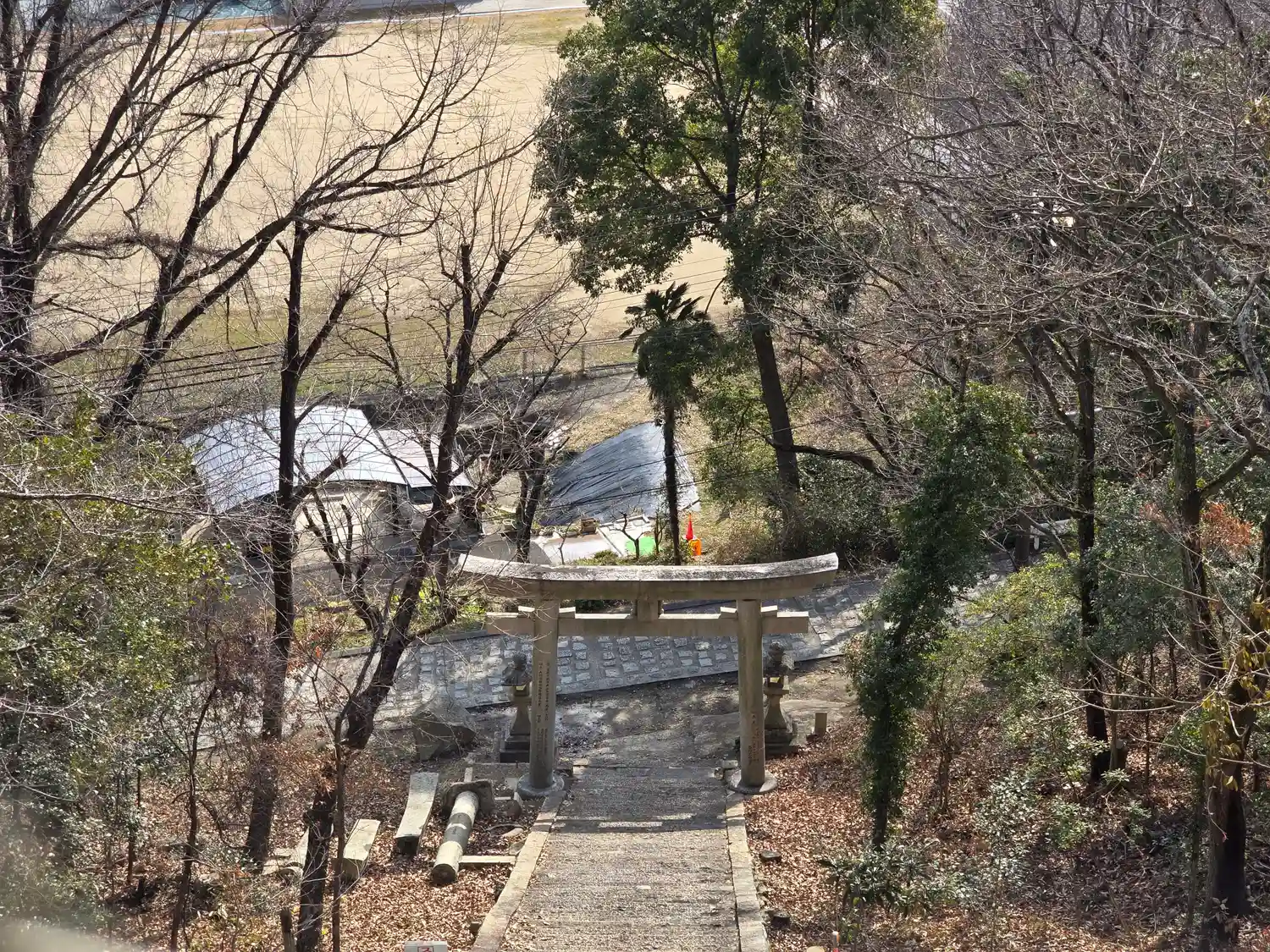 石段下の鳥居。行って戻る元気がなかった。