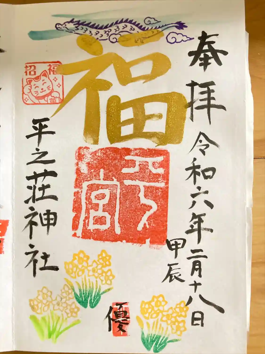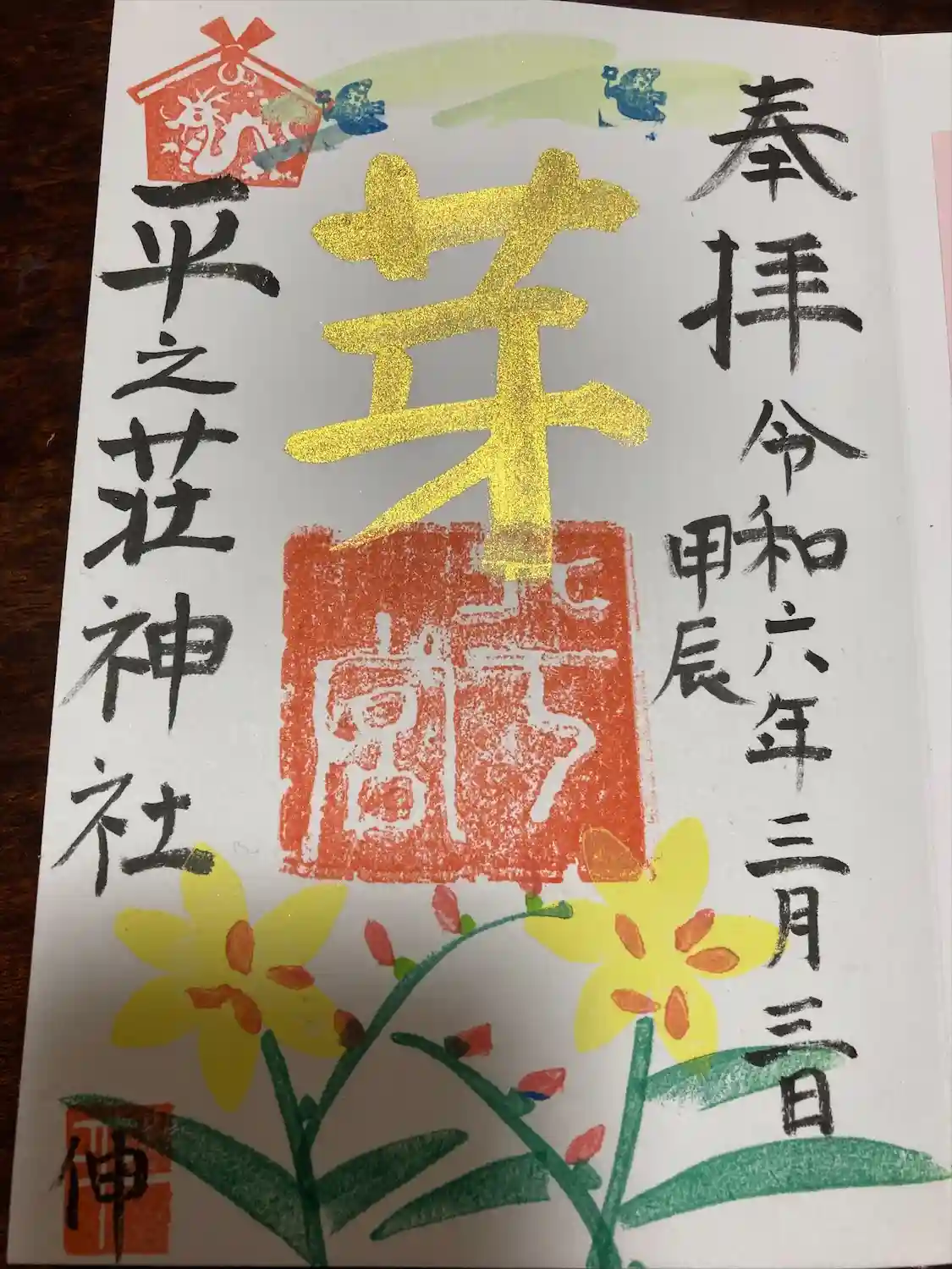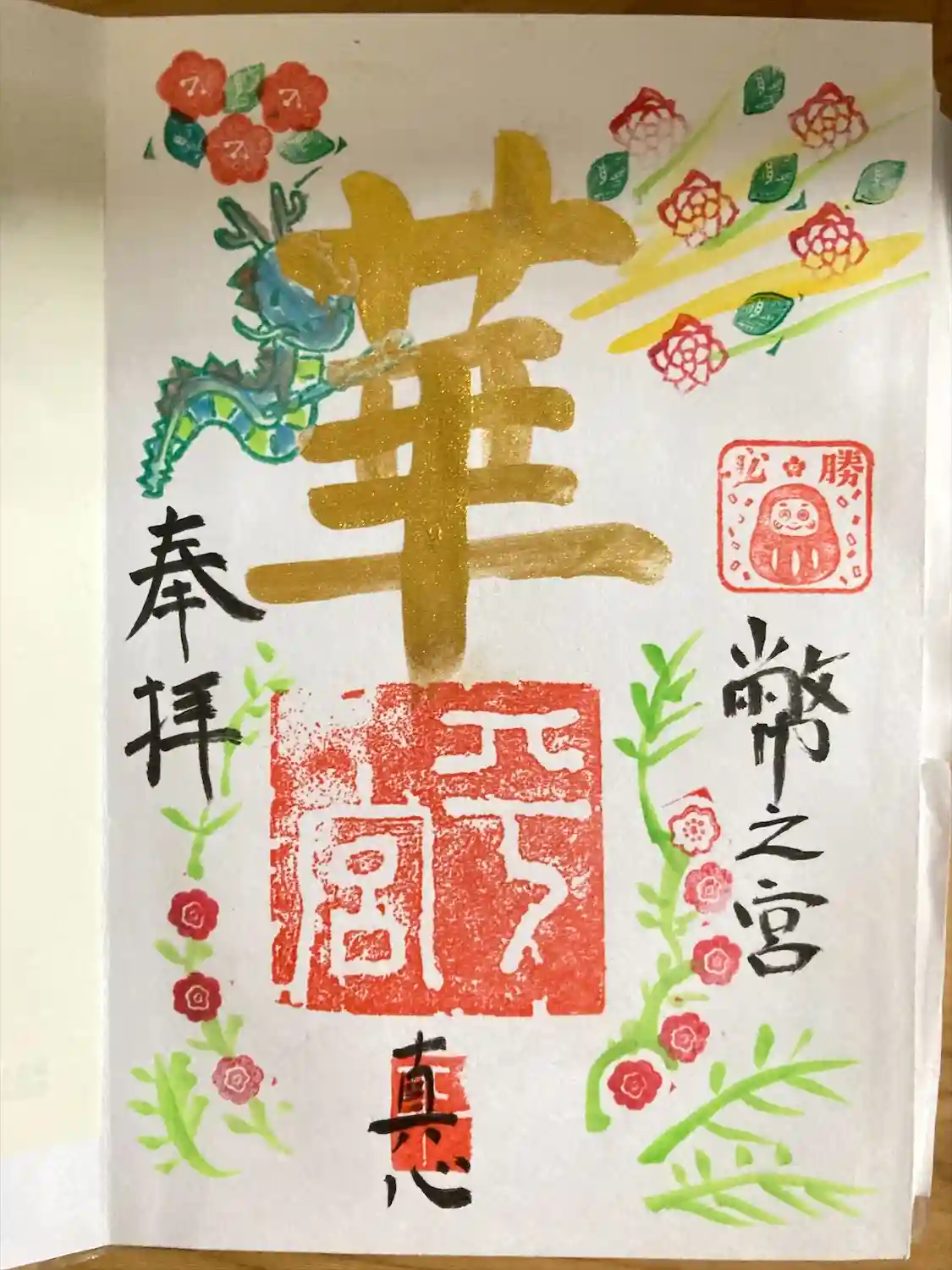直書き御朱印です。金文字が少し失敗してます😃