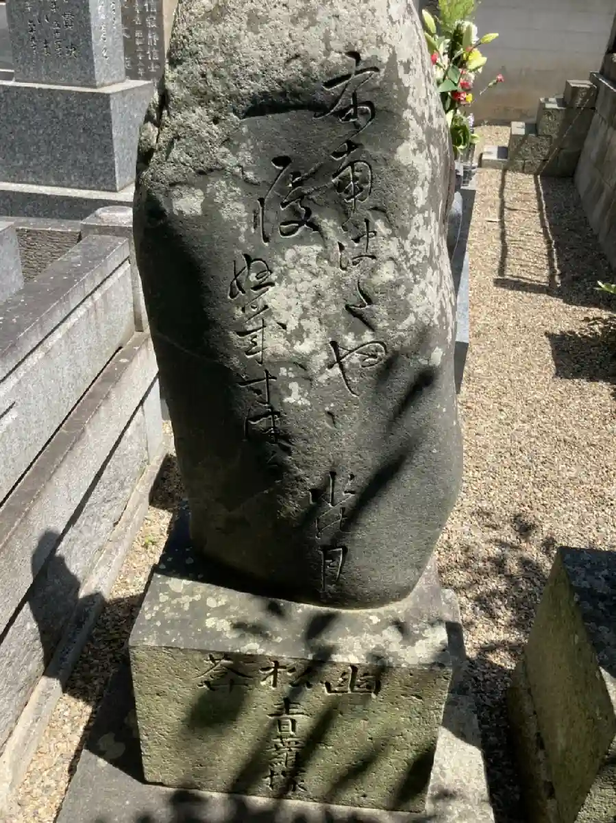 寺家町の光念寺に寛政三年(1791)、52才で亡くなった墓碑があり、側には栗本二世玉屑(ぎょくせつ)、同四世可大(かだい)、青蘿の後ろには妻のおのぶの墓が寄せてあります。