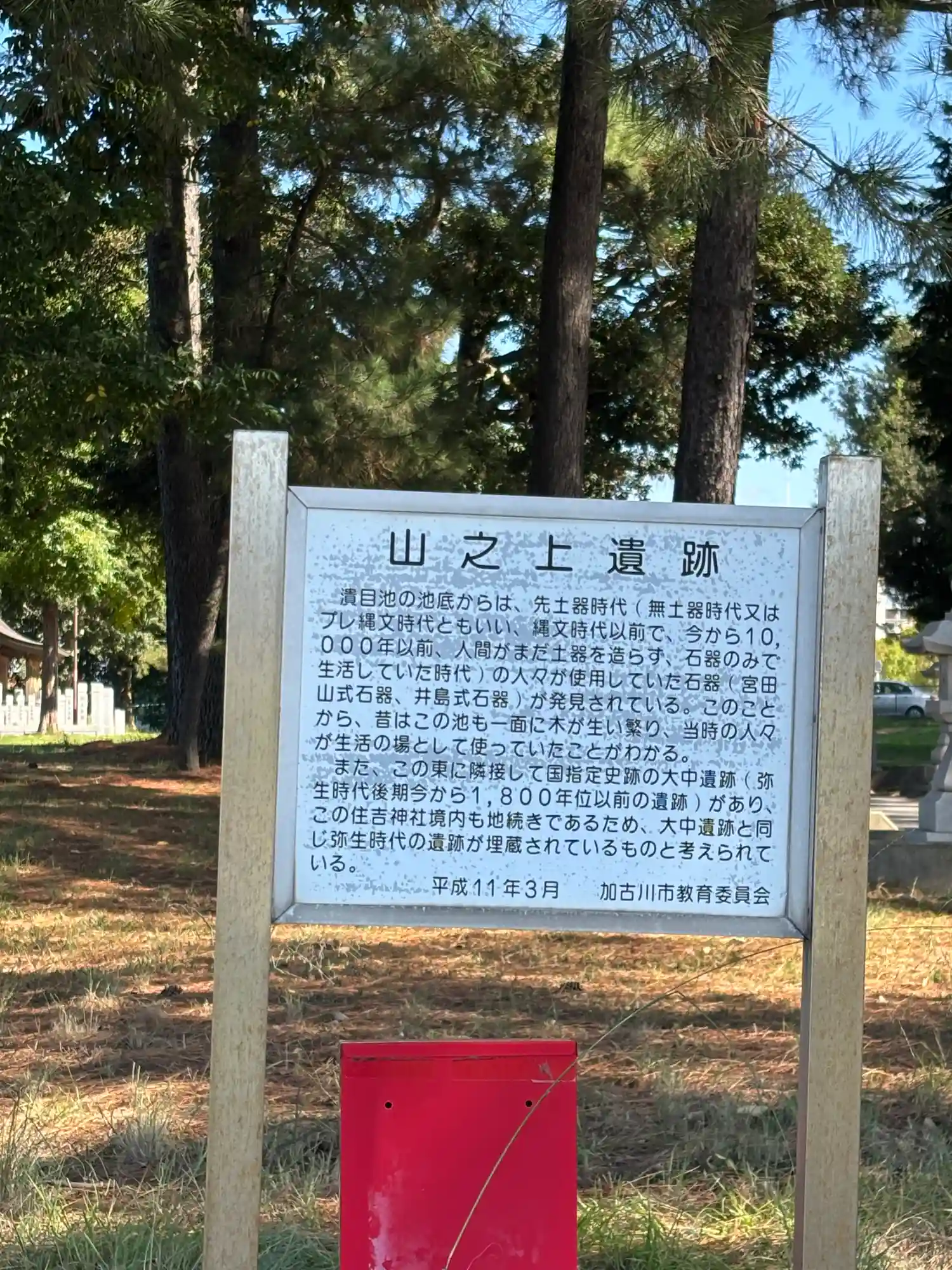 この潰目池あたり一帯は、山之上遺跡と呼ばれています。