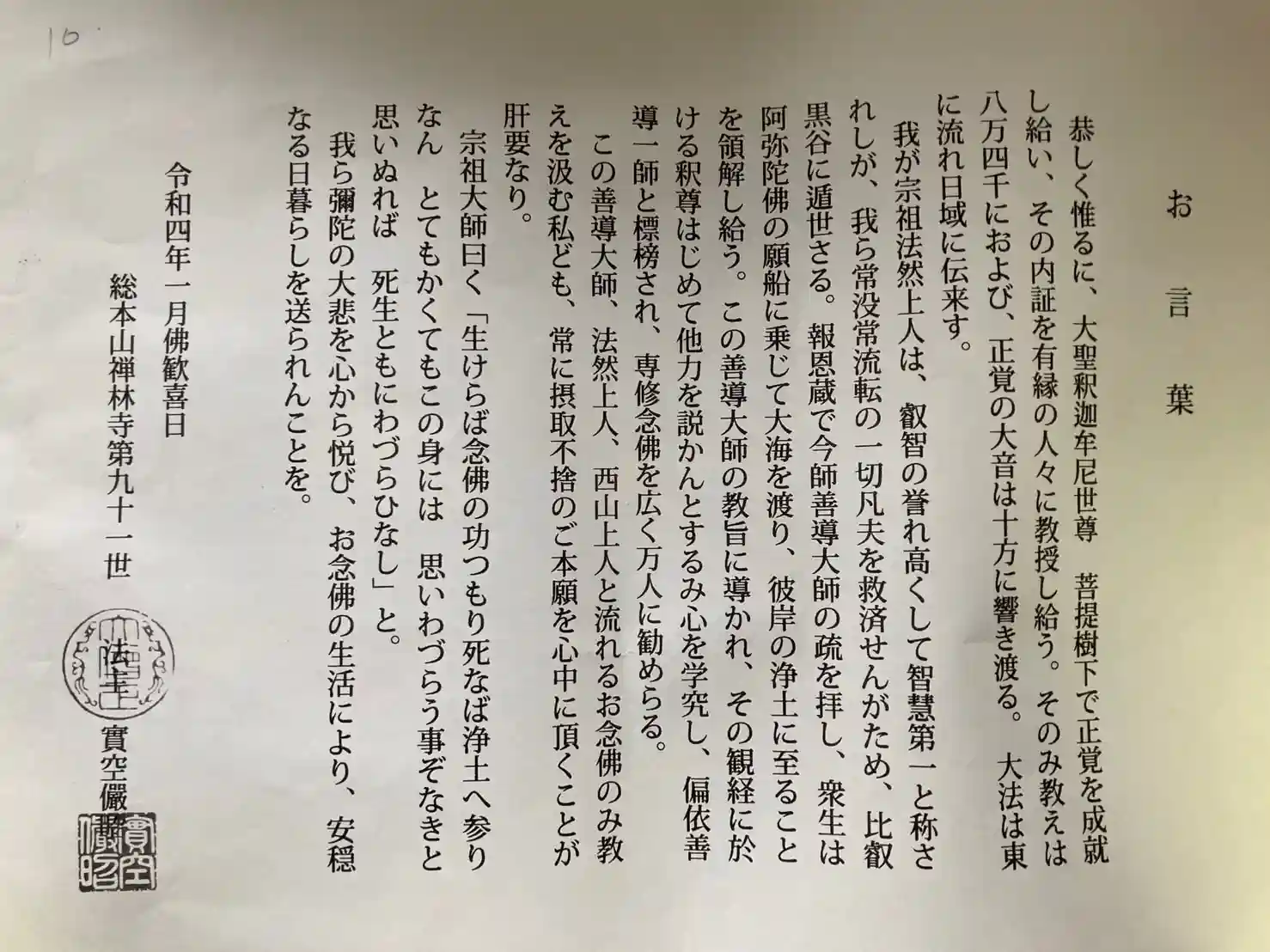 令和四年一月佛歓喜日