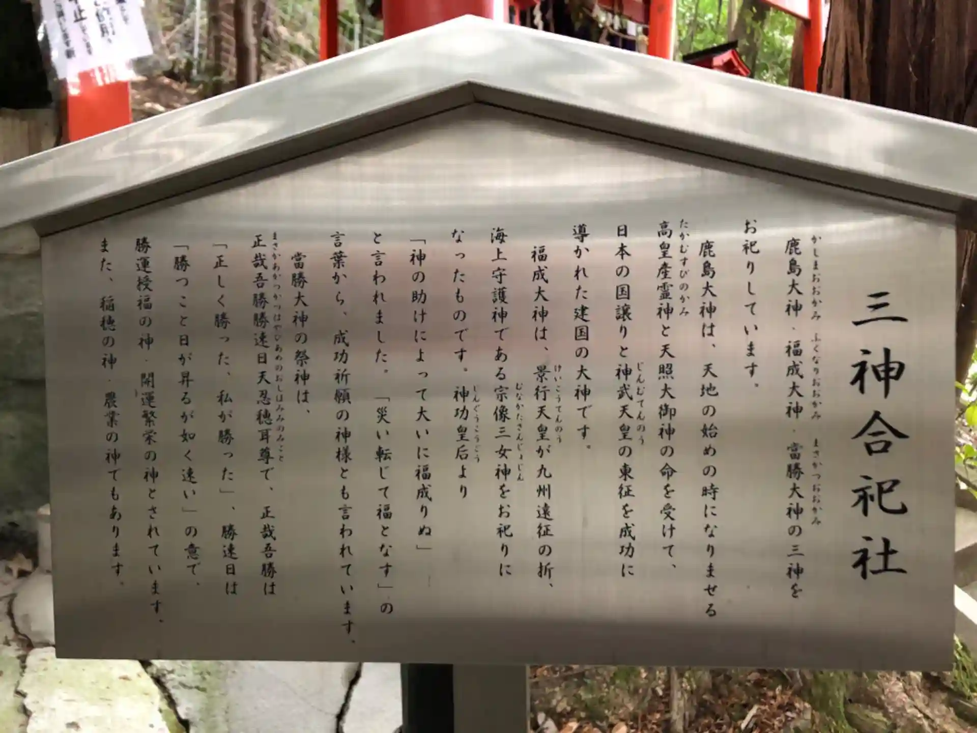 鹿嶋大神、福成大神、まさかつ大神が祀られてます。