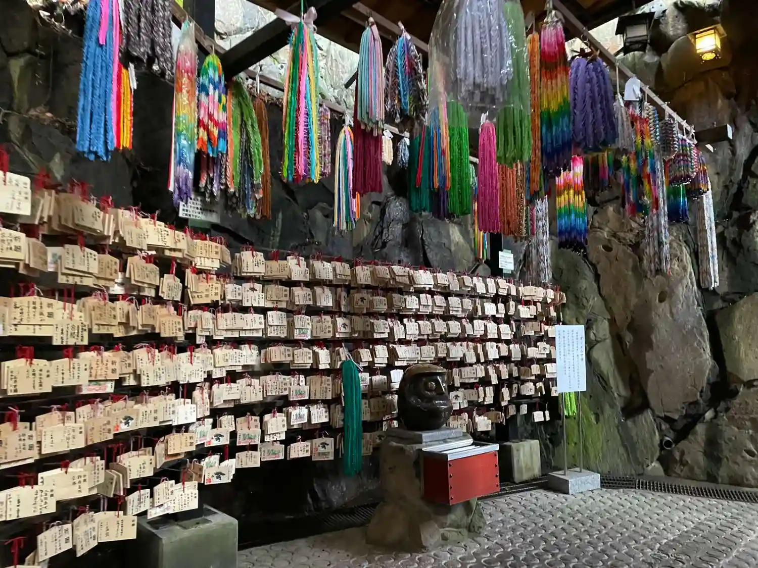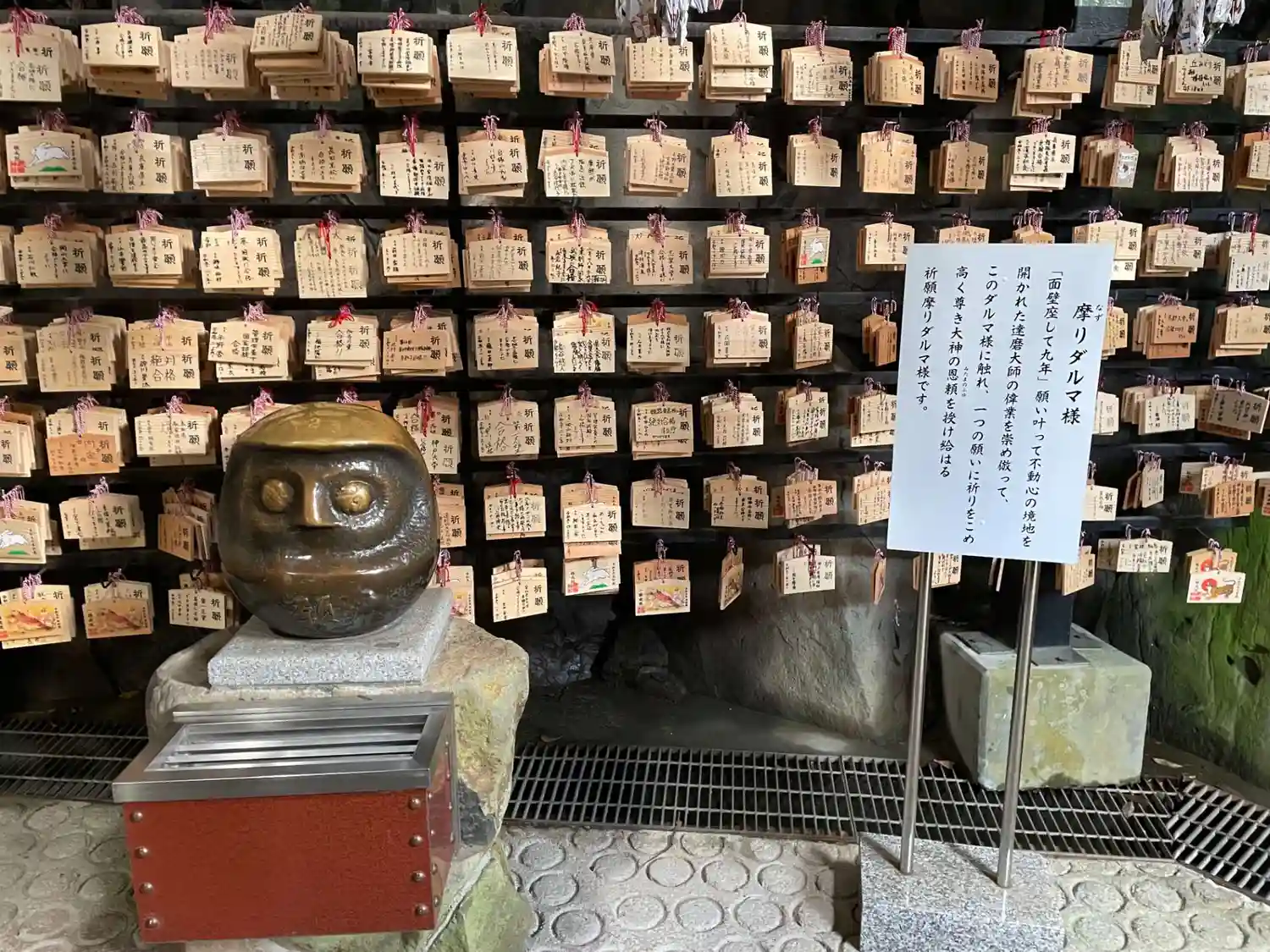 摩り願い石。コロナ禍なので触らないようにとの注意書きが貼ってありました。