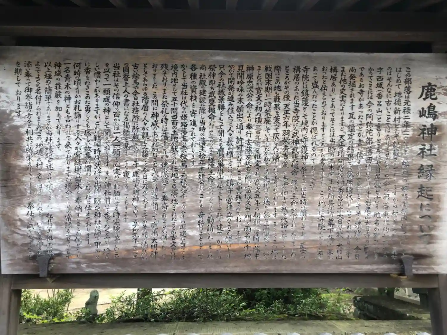 鹿嶋大神の石碑の裏側