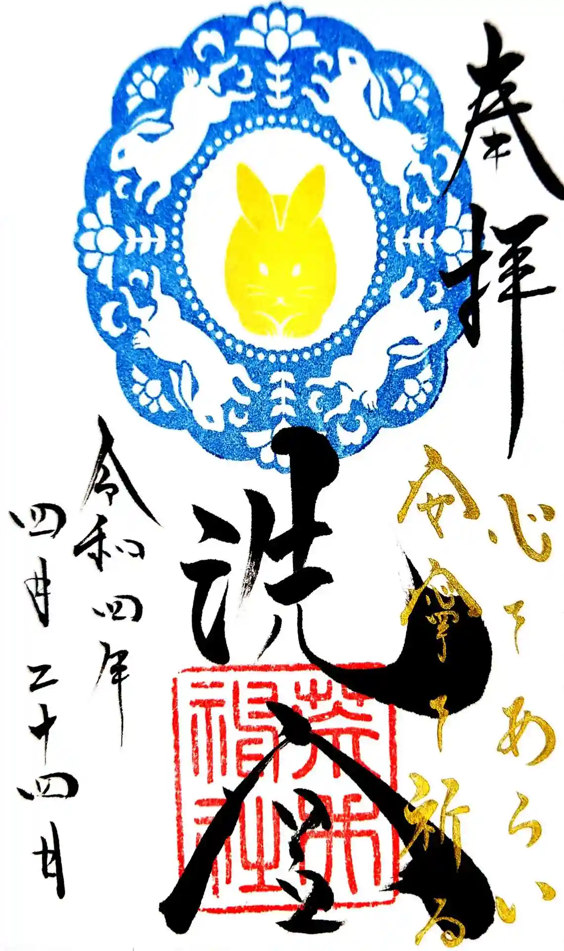荒井神社の2022年4月の洗心御朱印と報国の和歌御朱印です。