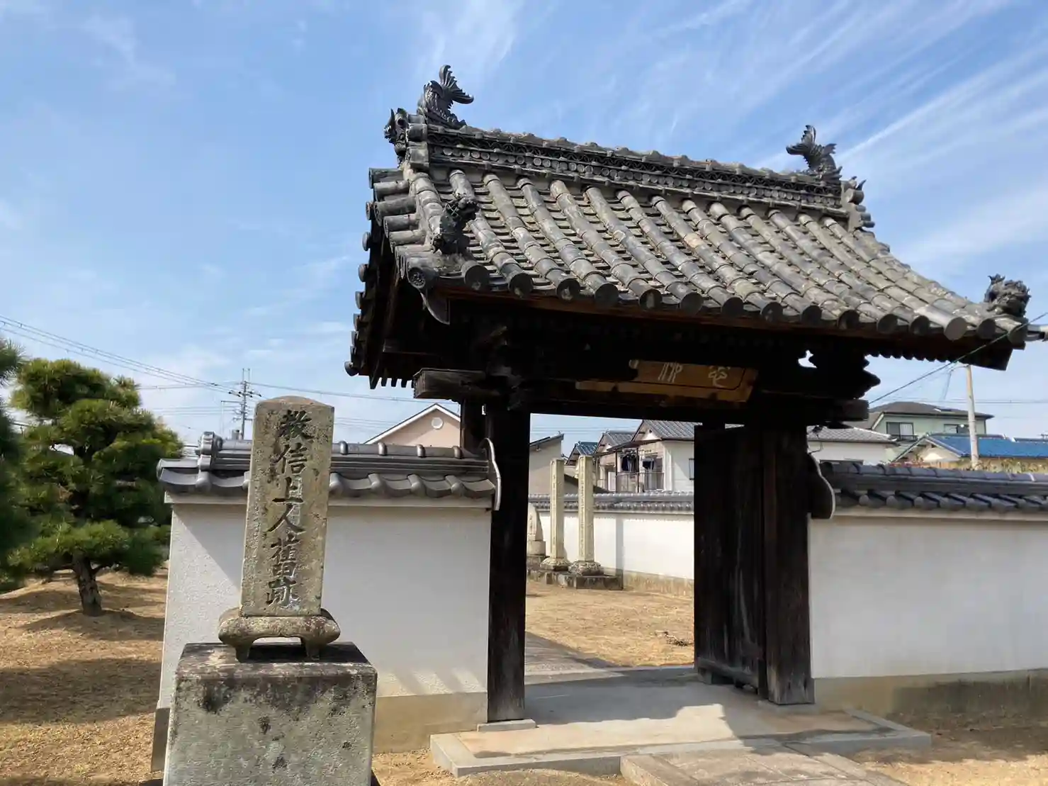 この門の向こう側に五輪石塔があります