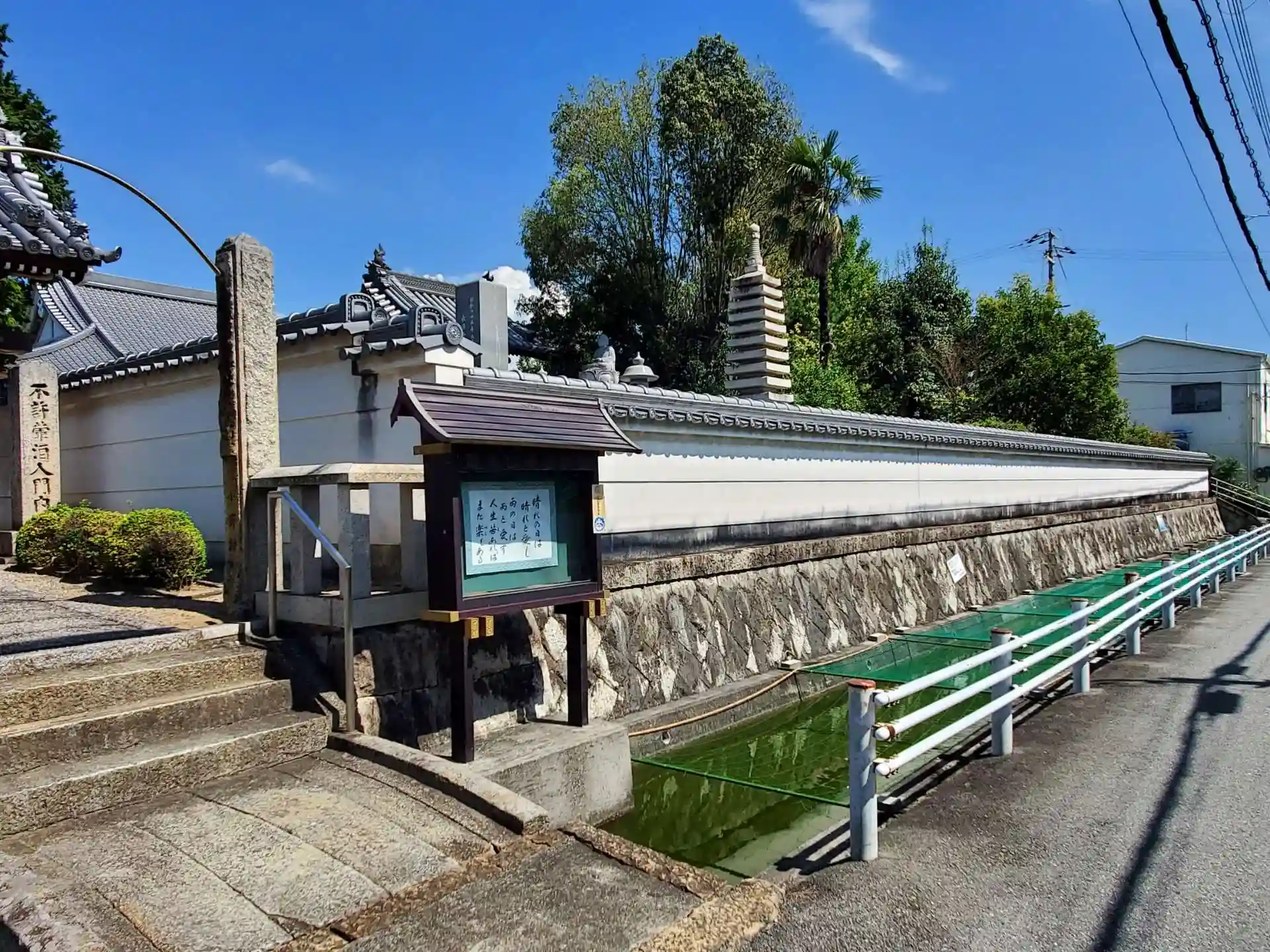 周辺道路は少々狭いですが、境内地の東側に数台分の駐車場が用意されていました。