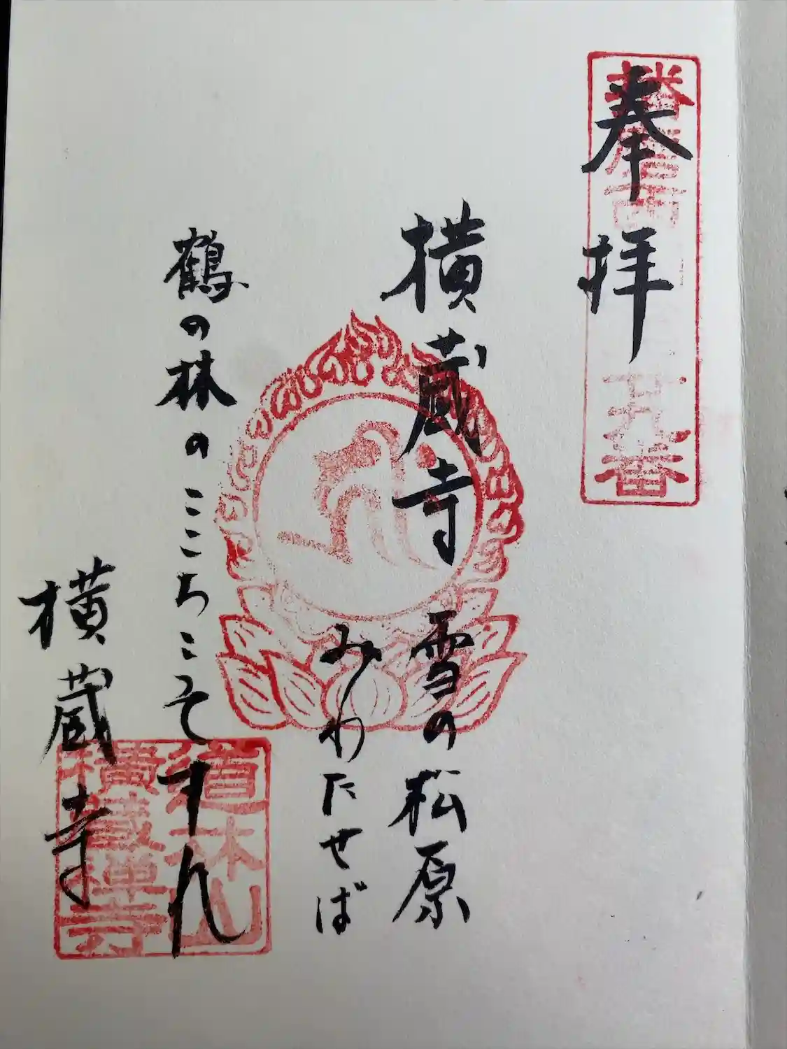 播磨西国第二十九番 横蔵寺御朱印