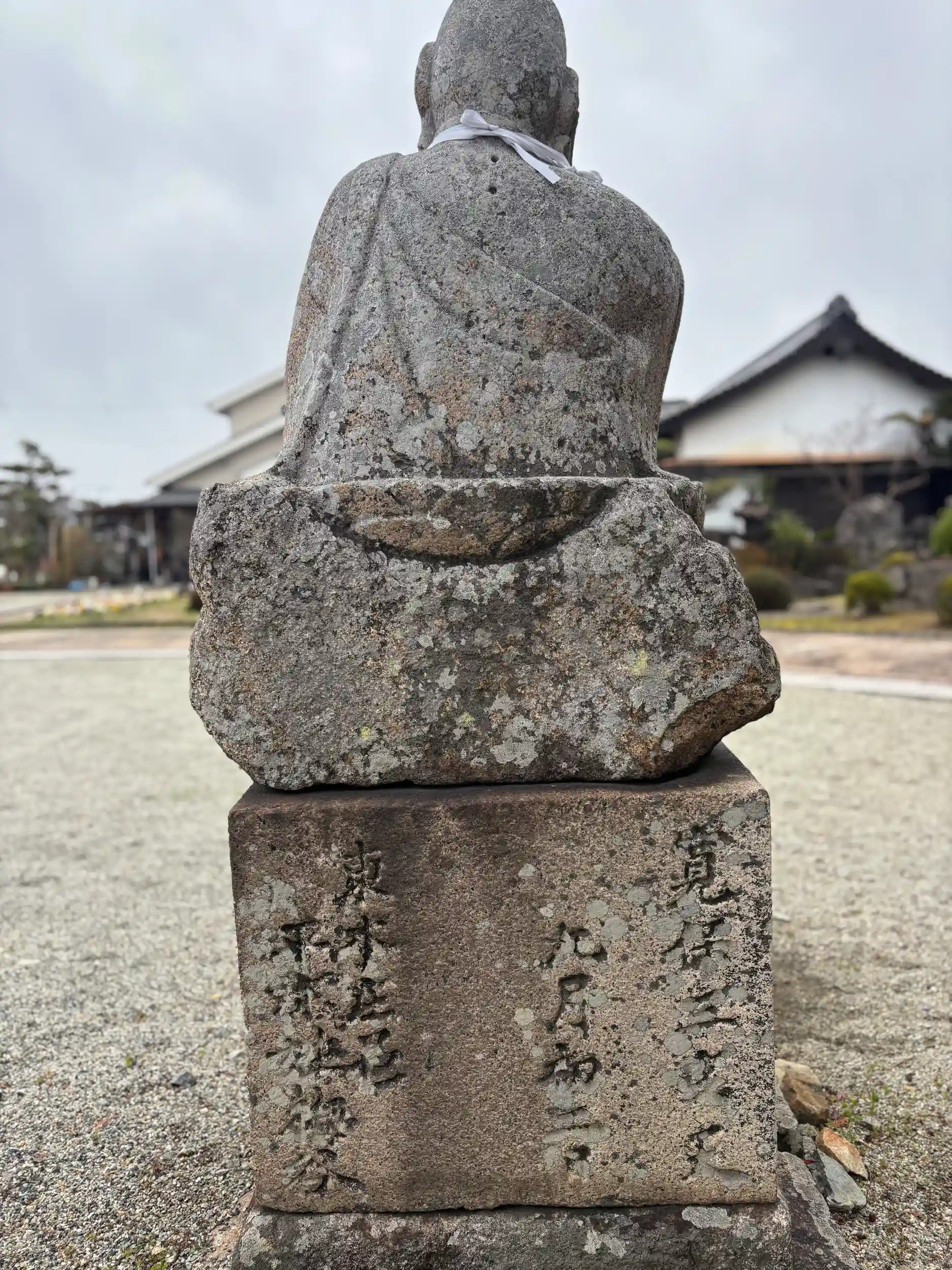 この地蔵尊は、石造地蔵尊としては他にあまり例を見ない足を崩した半跏趺坐に特色がみられます。
