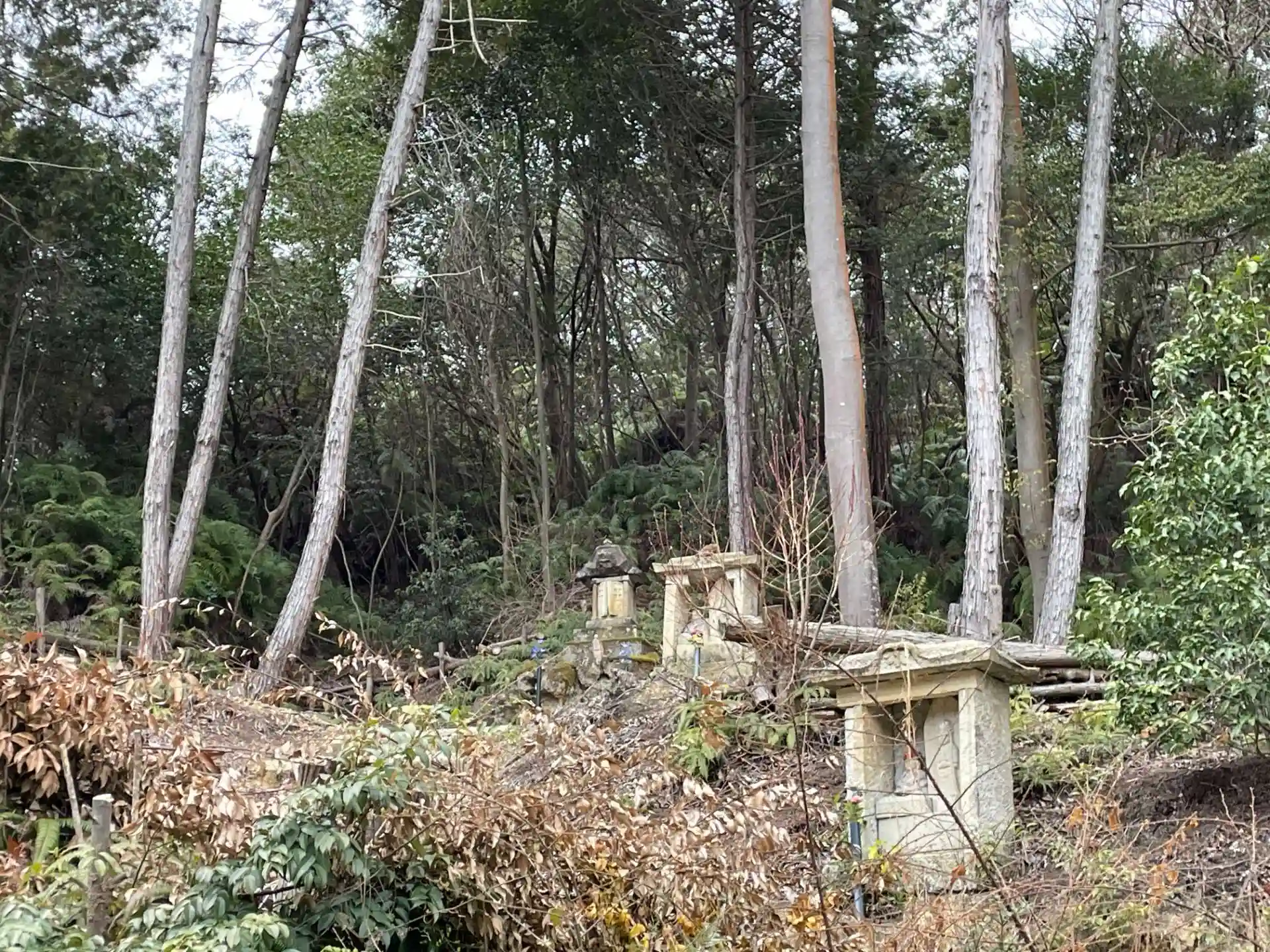 裏山には小さな祠がたくさんありました。