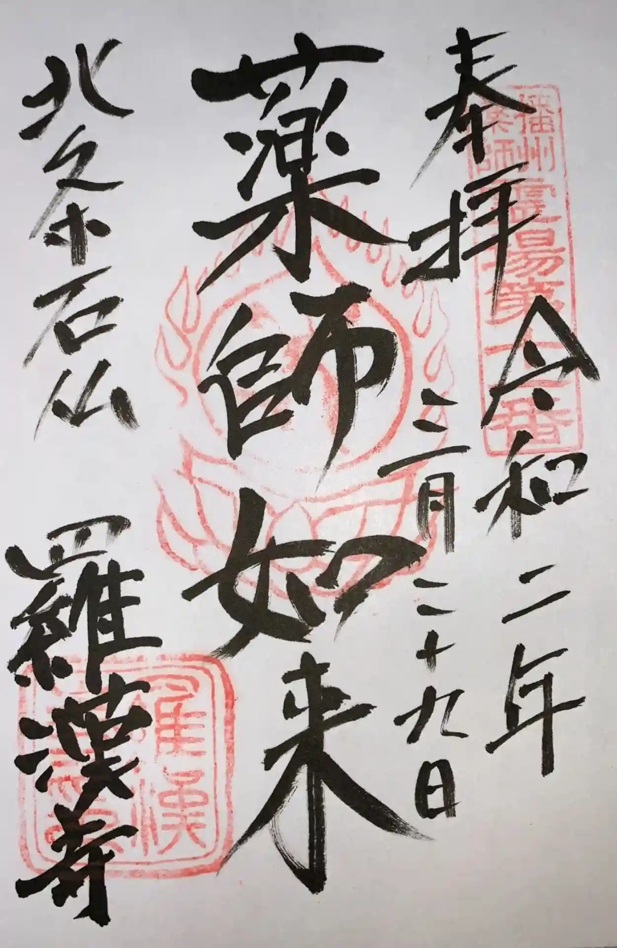 誰が造ったかわからない、素朴な石仏群があり、五百羅漢と呼ばれています。自分自身や親子、友達などに似ている顔が必ずあると言われています。何回目かの訪問で、ご朱印は昨年のものです。