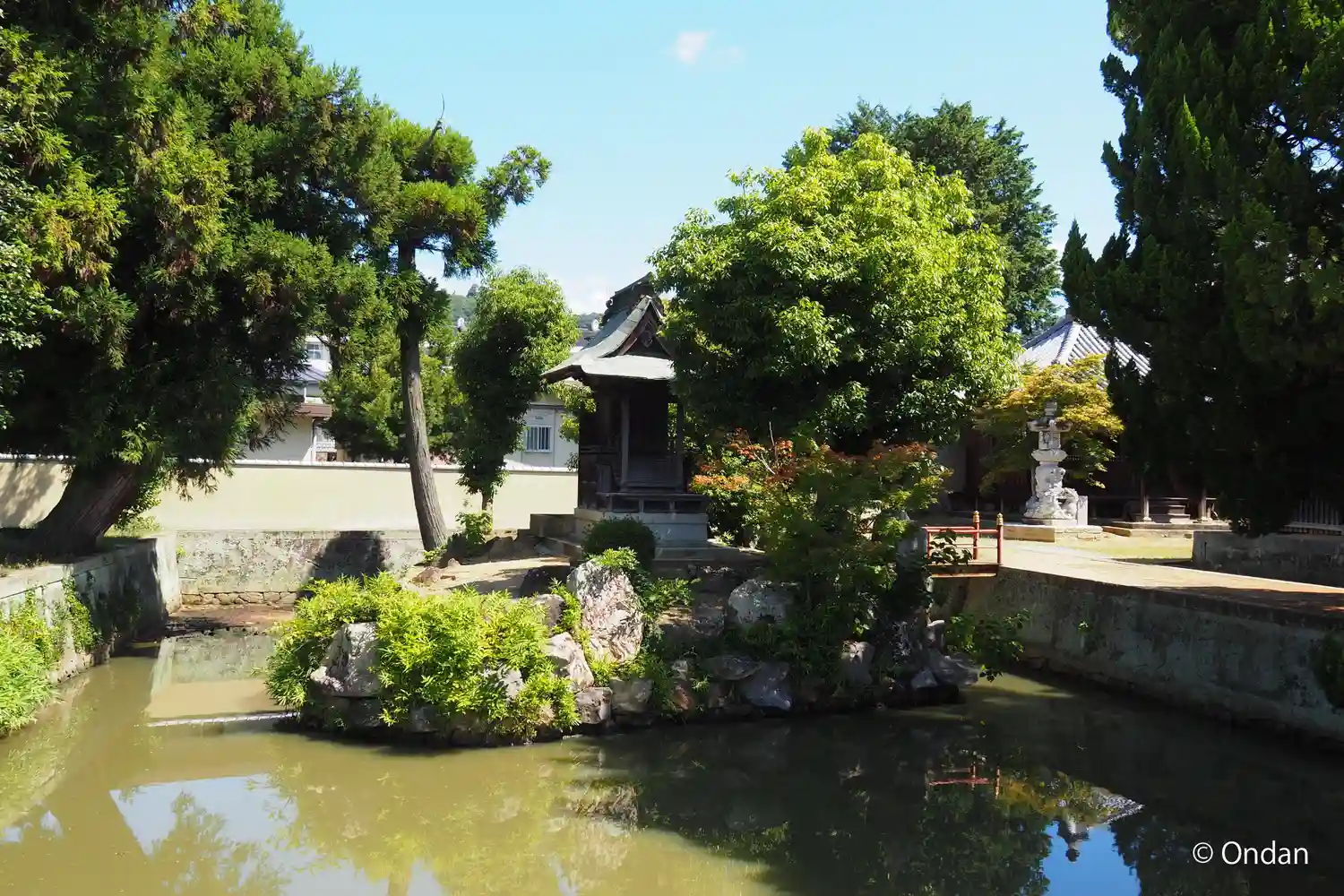 池の上に浮かぶ建物(隣の住吉神社の境内社かな?)。