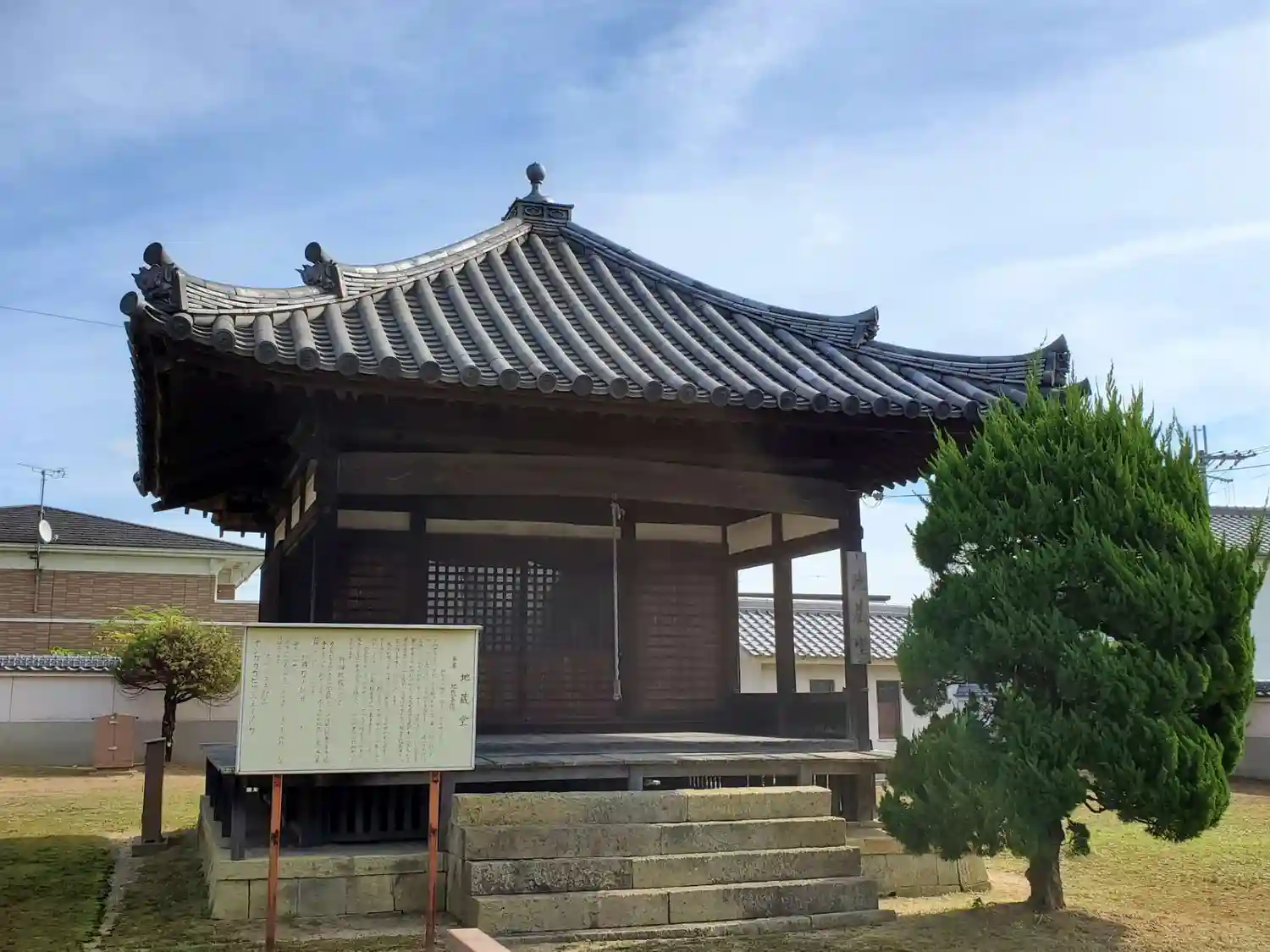 まず1つ目は<地蔵堂>。別名は水子地蔵、子育て地蔵。本尊は地蔵菩薩。江戸時代中期の1754年再建。正面三間、側面三間、宝形造、本瓦葺。