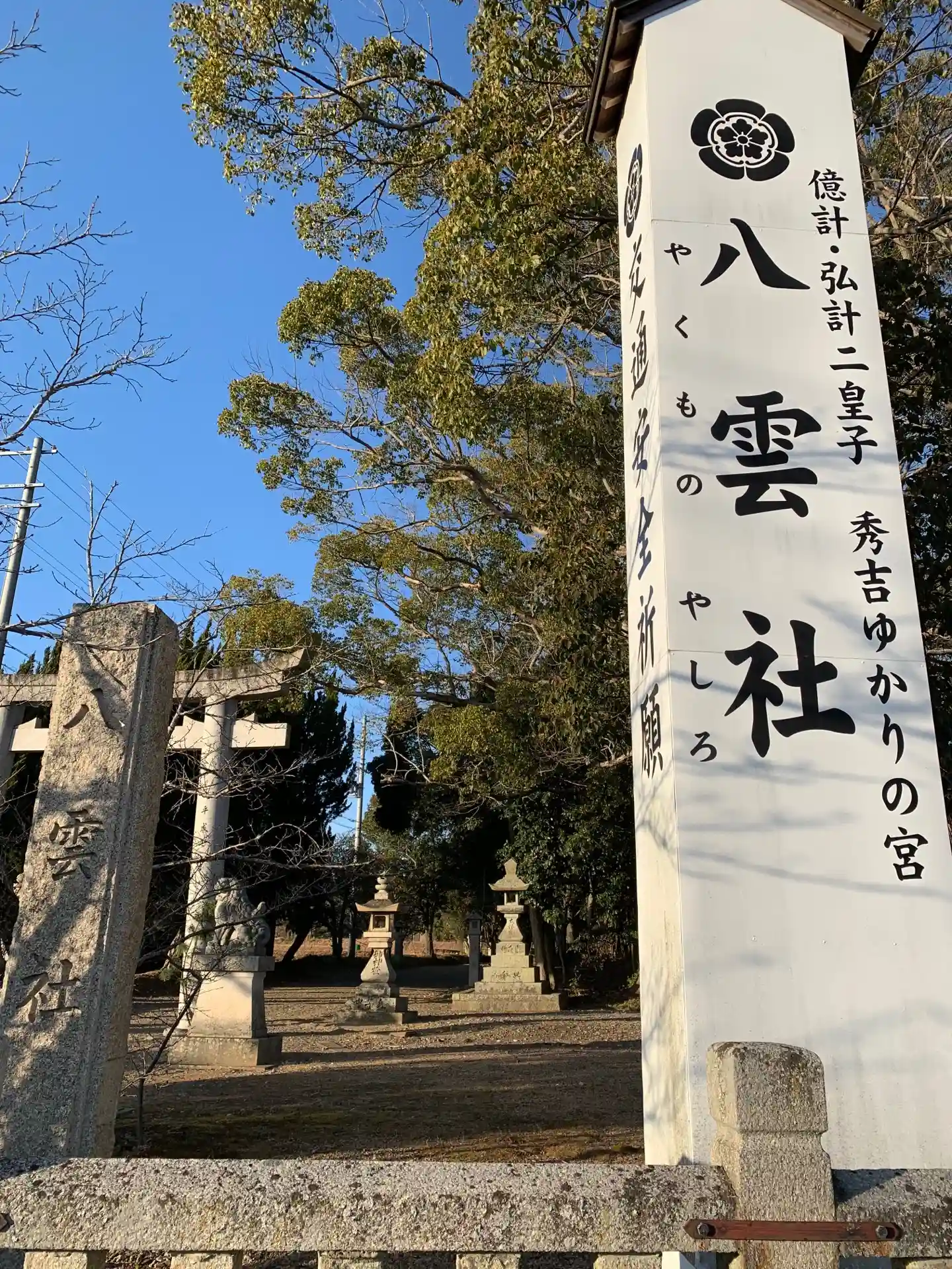 主祭神は素盞嗚尊、また併せて5男三女命を祀っています。 億計・弘計二皇子 秀吉ゆかりの宮とあります。