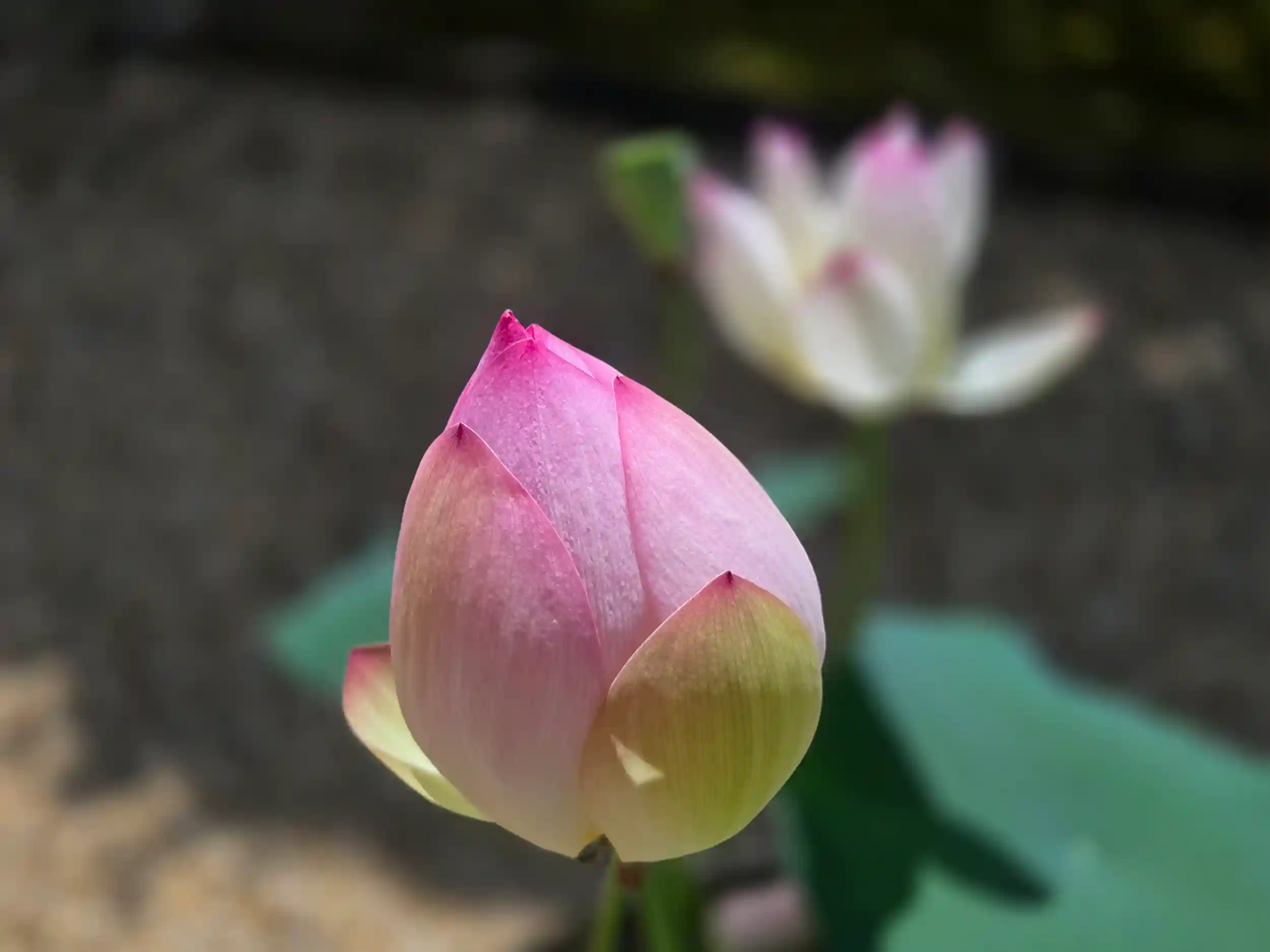 実は、一昨年にこちらの副住職に蓮根をおすそ分けしていただき、我が家でも育てているのですが、一昨年も去年も立派な葉が何本も立っているのですが、花が咲かず・・・