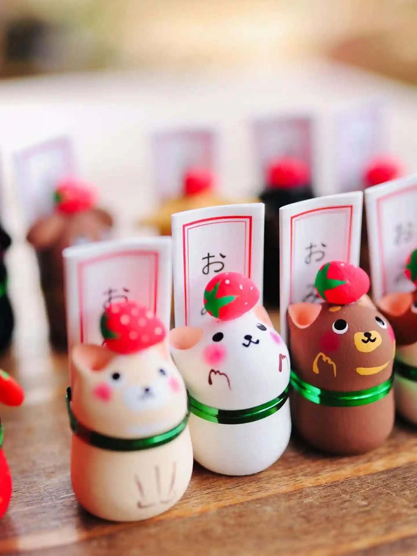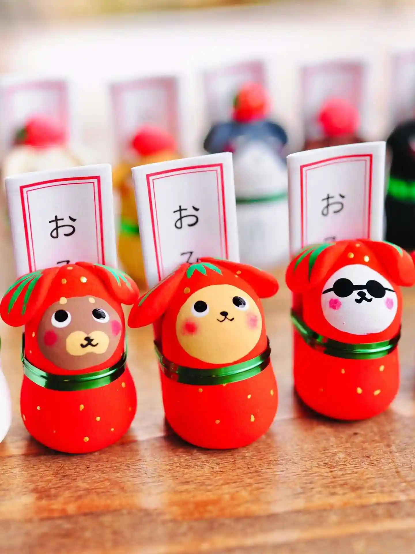 イチゴを持って皆様のお参りを