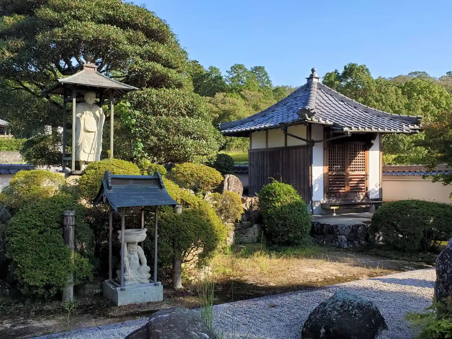 山門をくぐり、左手に本堂と枯山水のお庭。横は地蔵堂?