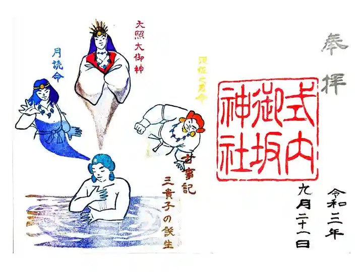9月の月替り御朱印2種類と古事記御朱印「三貴子の誕生」です。