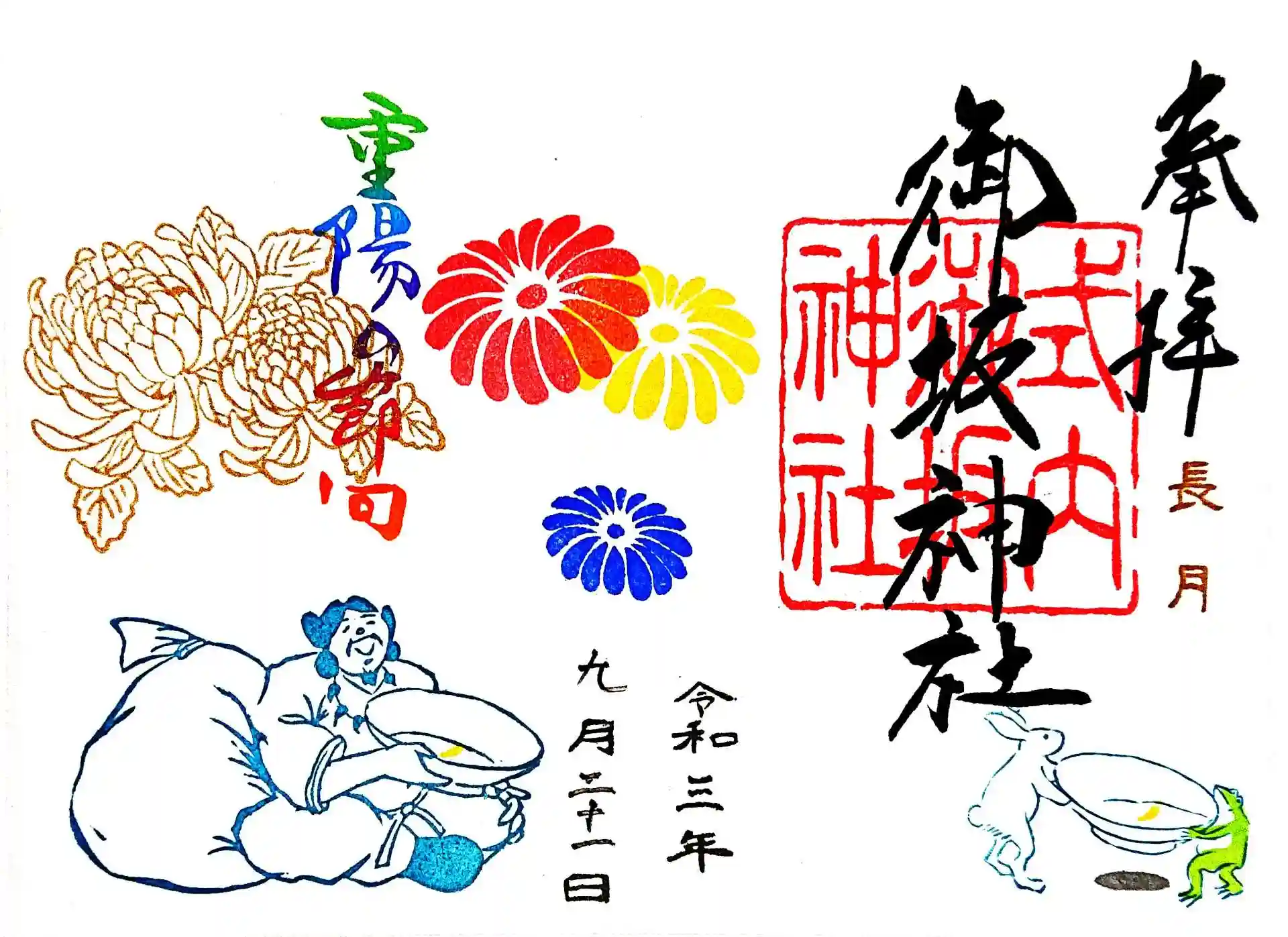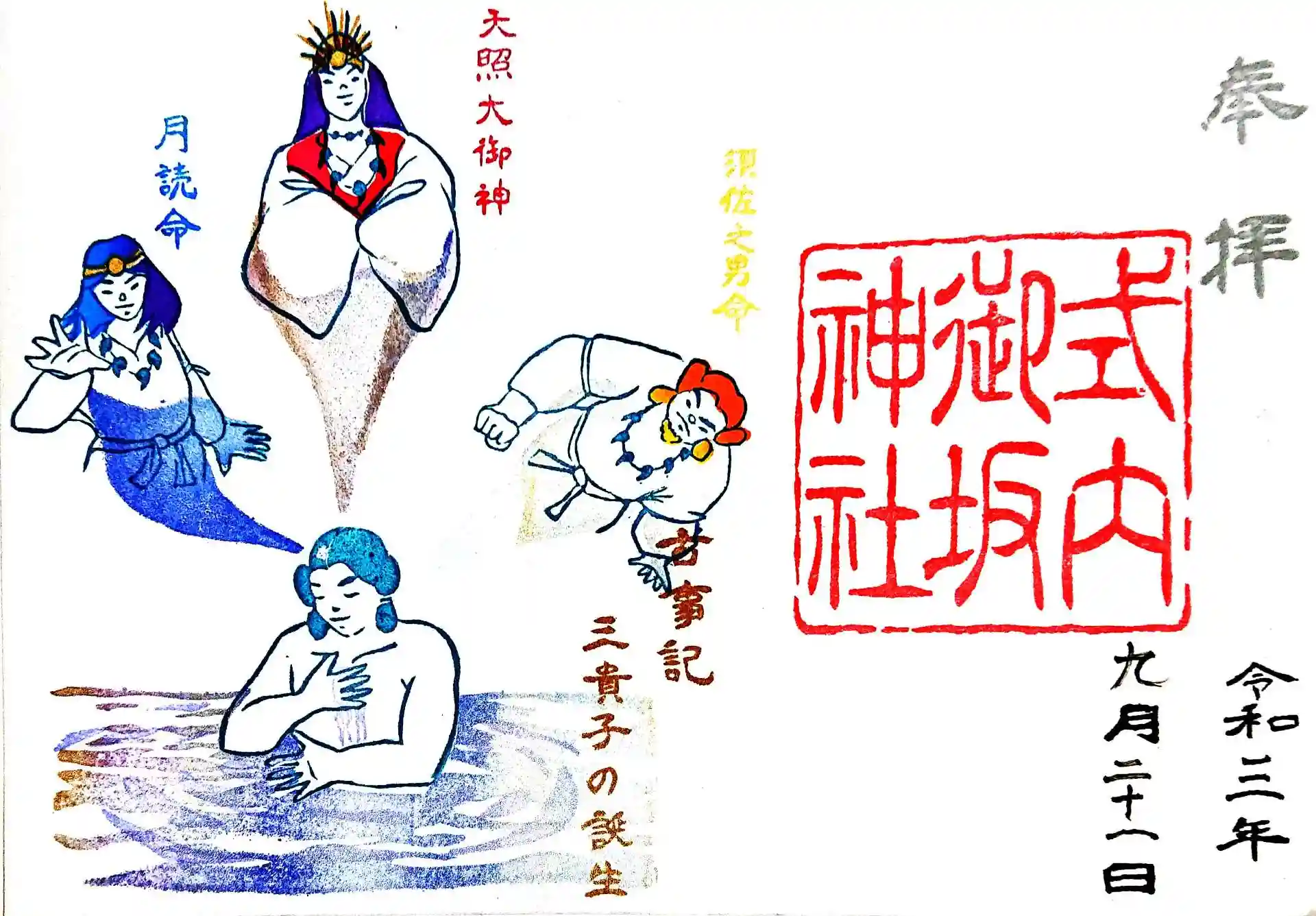 9月の月替り御朱印2種類と古事記御朱印「三貴子の誕生」です。