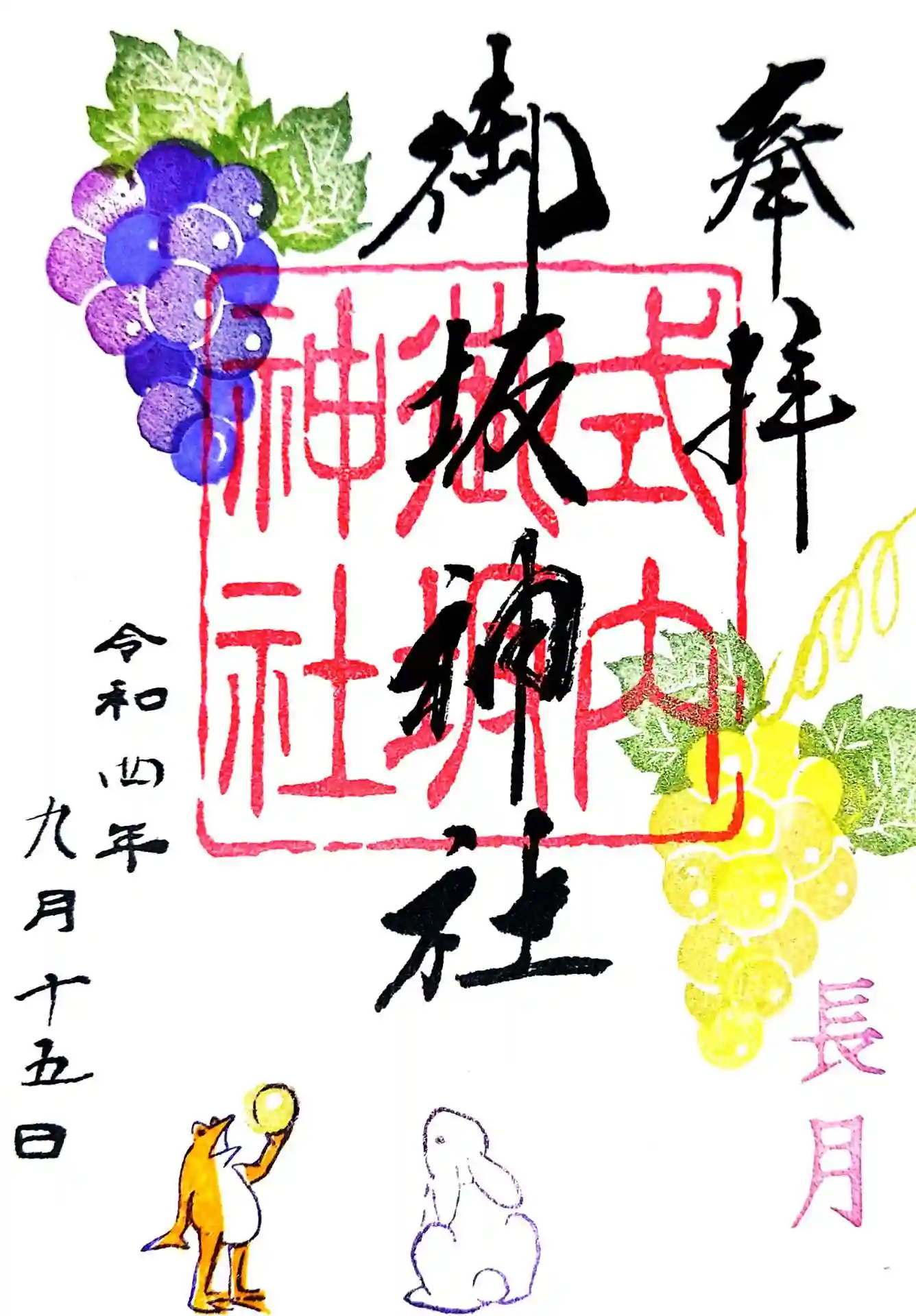 御坂神社の2022年9月の月替り御朱印と古事記御朱印「須賀の宮」です。