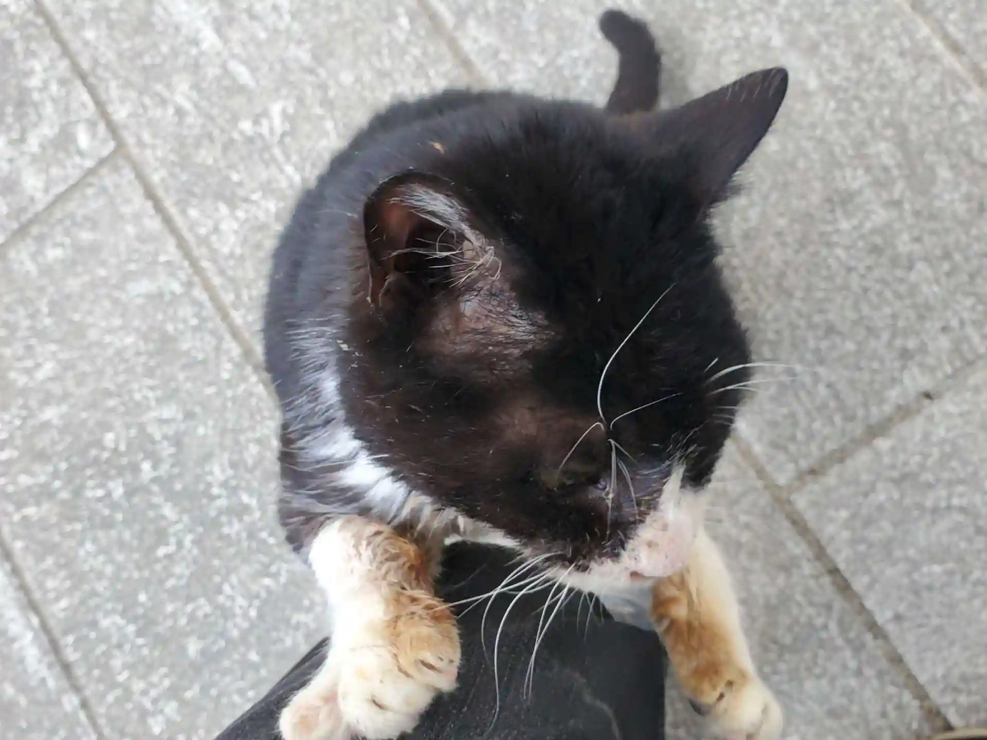 こちらの猫ちゃんはしゃがむとすりすり、そして膝に前足を乗せたかと思うと、どんどん上ってきて私の肩の上に上ろうとしたので「ちょっと待ったー!」と抱っこする形に。