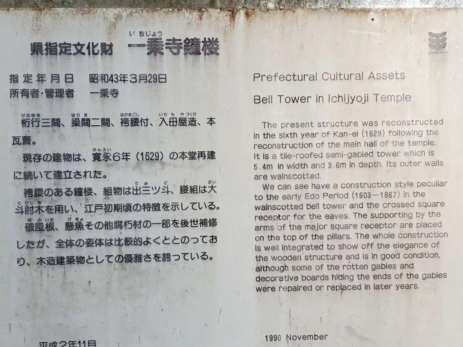 本堂横の鐘楼。