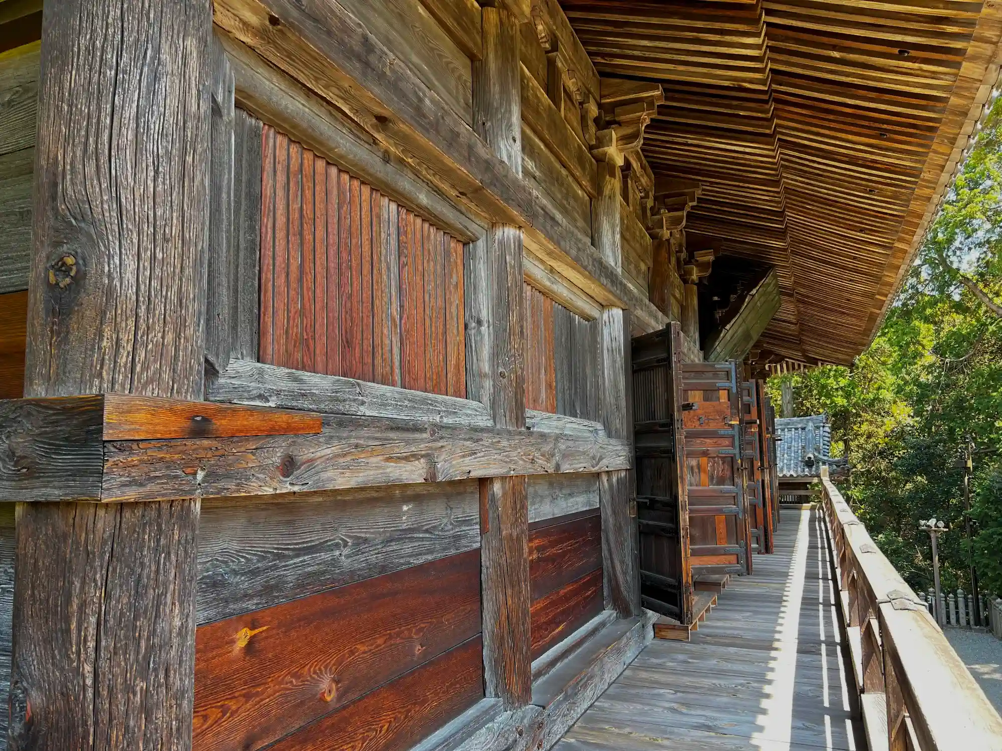 本堂南西端から見た、本堂南側の通路。