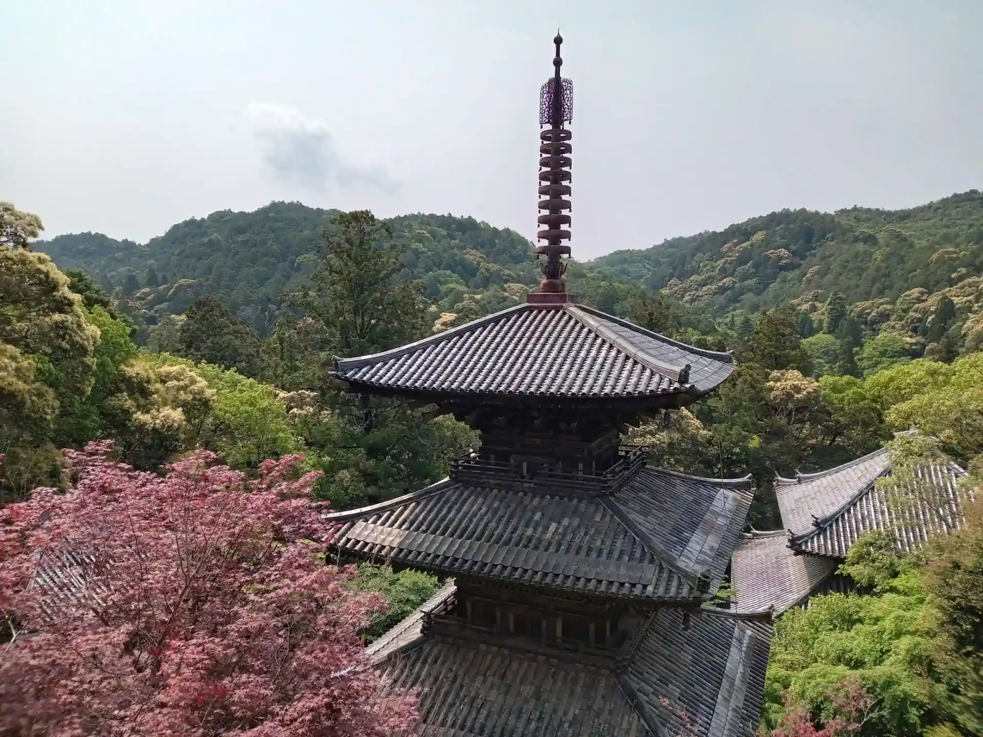 ご本堂から見た三重塔。