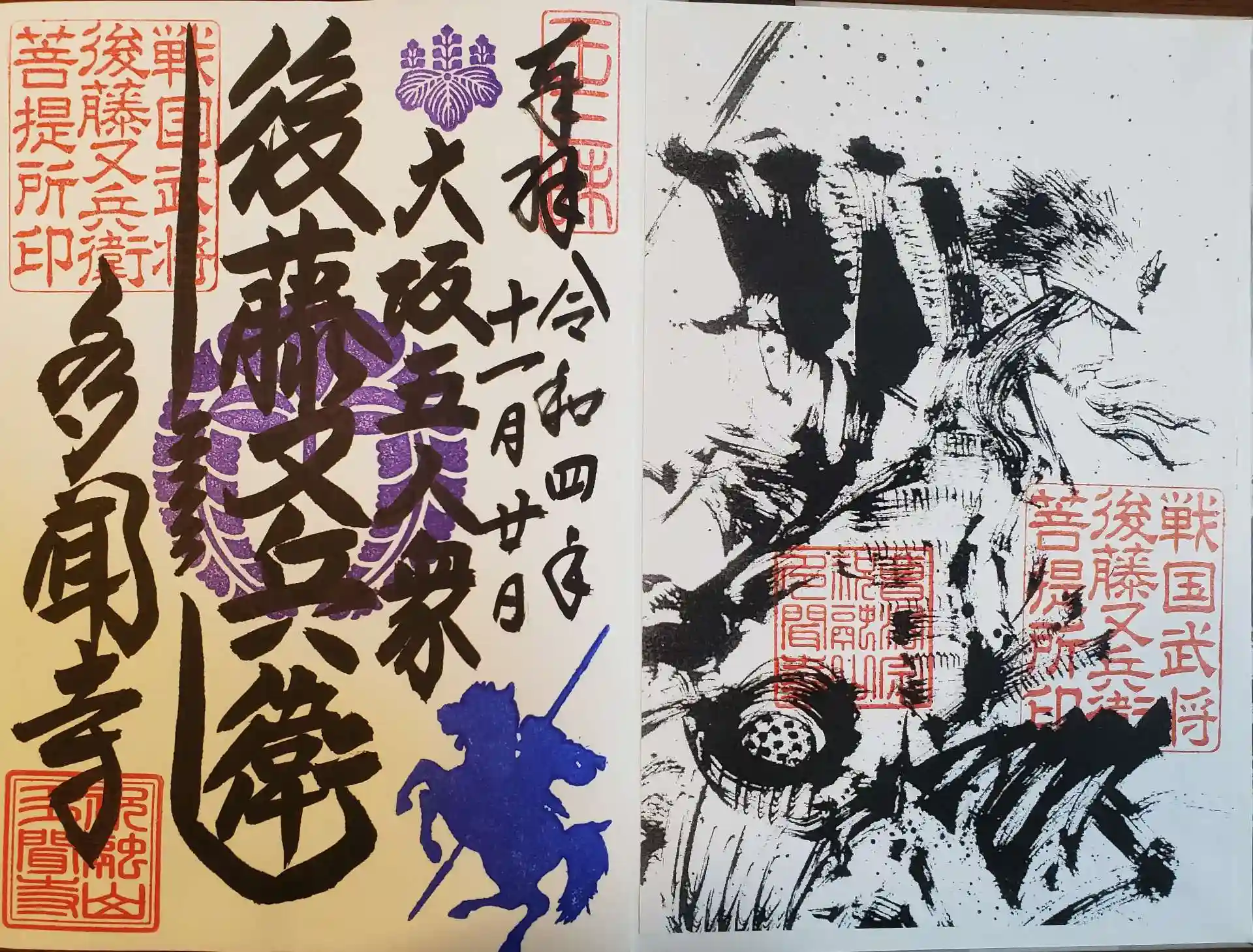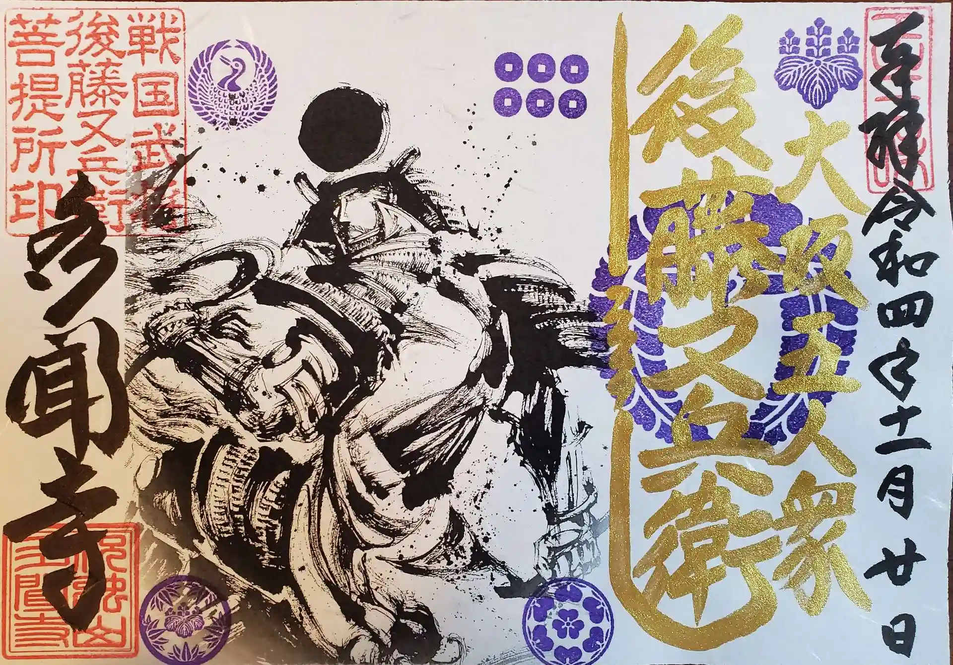 六つの家紋が押されていて、一つは後藤又兵衛。