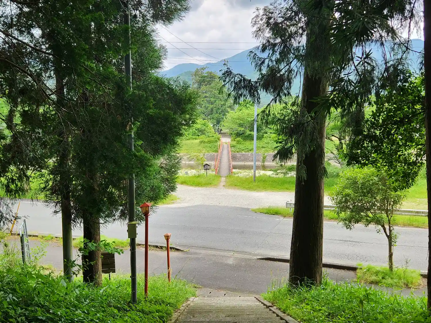杉原川にかけられた細い参道の橋。