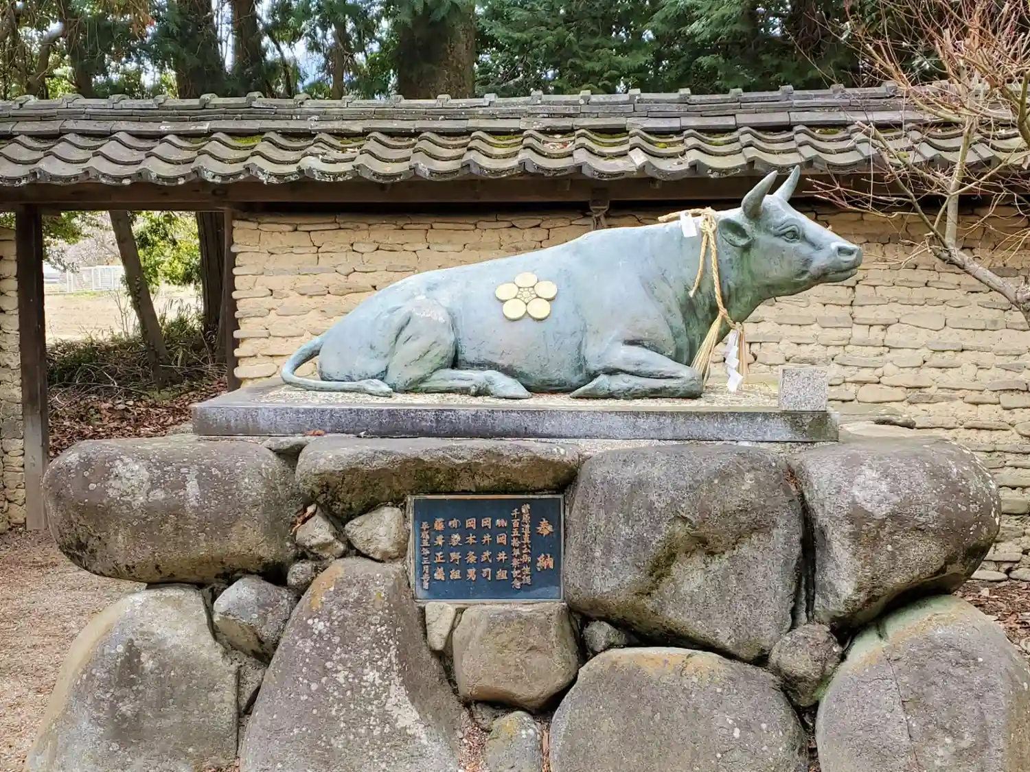 通常、拝殿や境内の周りには玉垣で囲まれていると思いますが、こちらは石積土塀で囲われています。