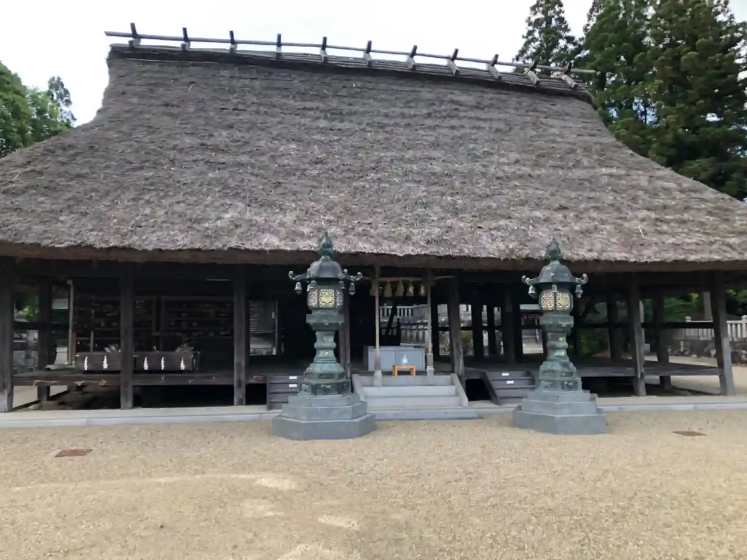 茅葺入母屋造の大きな拝殿の写真をネットで見て、いつかは参拝したいと思っていたので実際に拝殿の前に立って感無量でした。