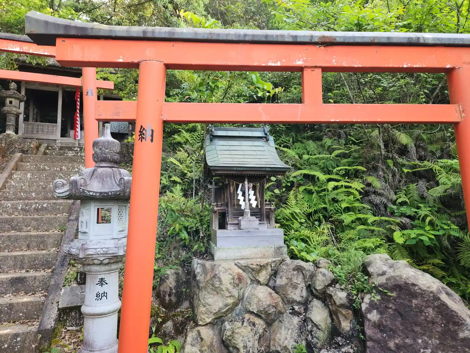 拝殿での参拝を終え、本殿左手に進むと山を登る階段と鳥居があり、その先には奥ノ宮があるようでした。