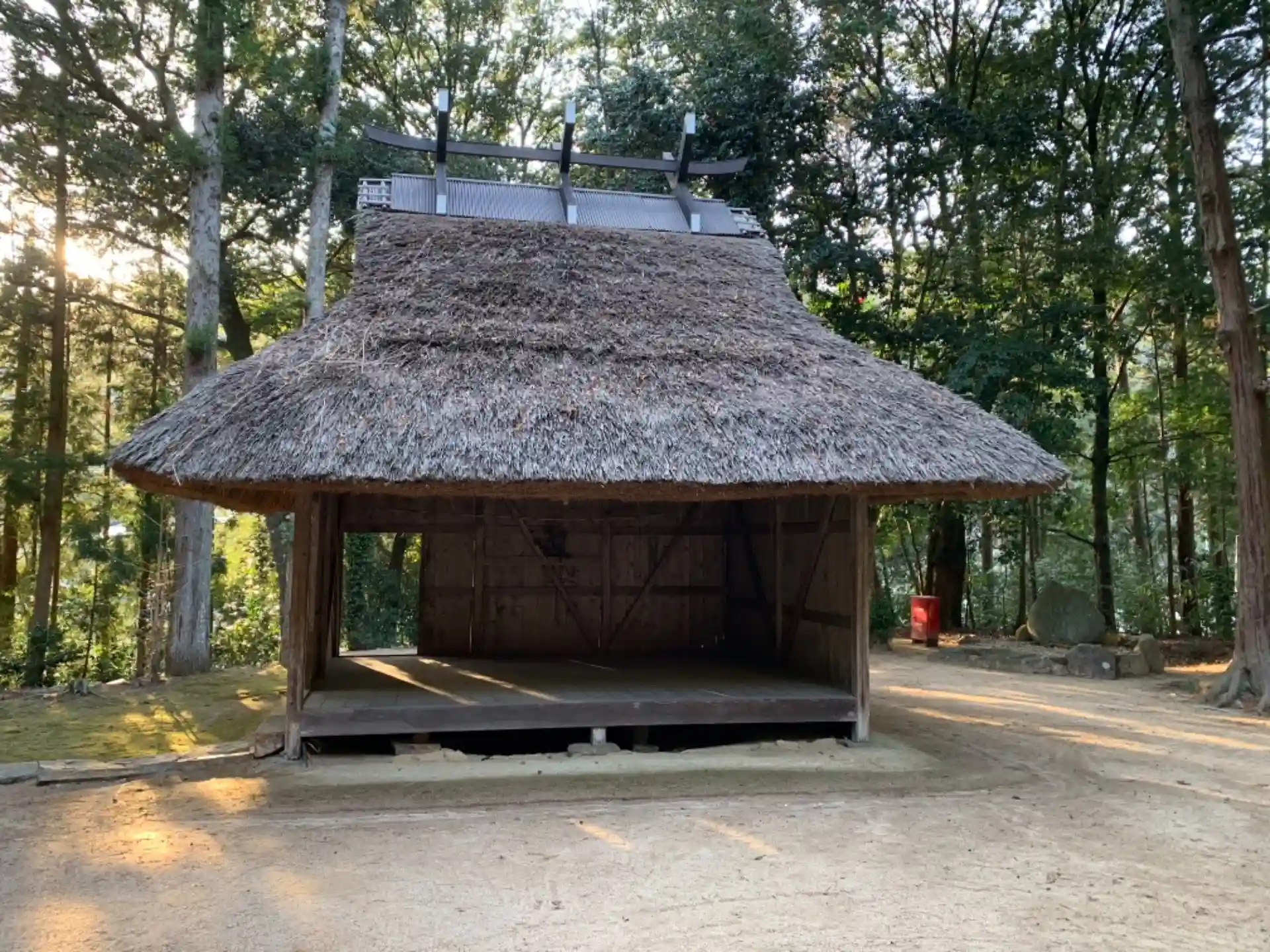 檜皮葺の本殿は国指定の重要文化財です。拝殿、舞殿は茅葺で独特の雰囲気があります。