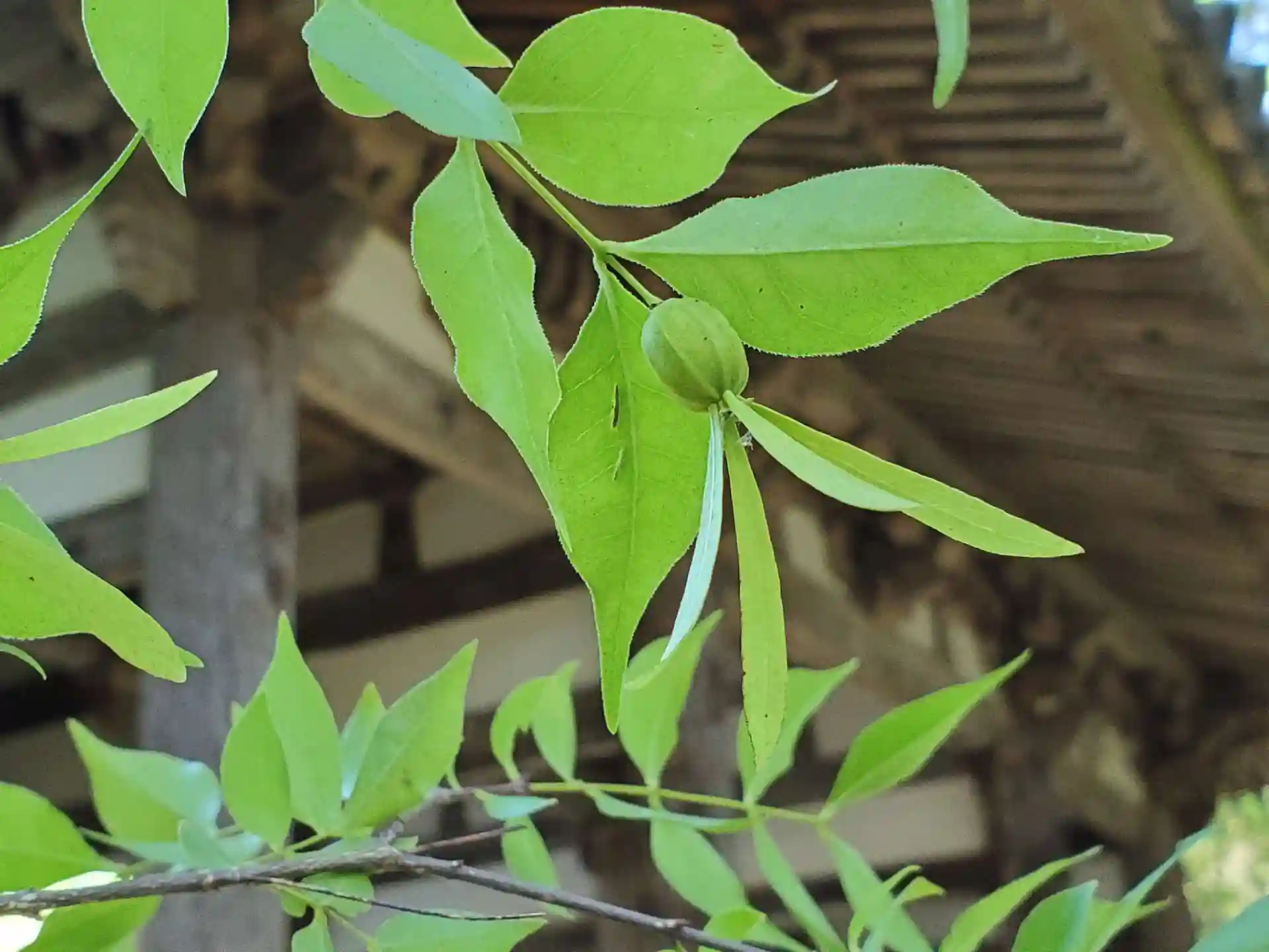 ガイドさんに「ツクバネは見た?」と聞かれて、どんな植物か判らず山門のところに誘導されて、「これですよ」と。