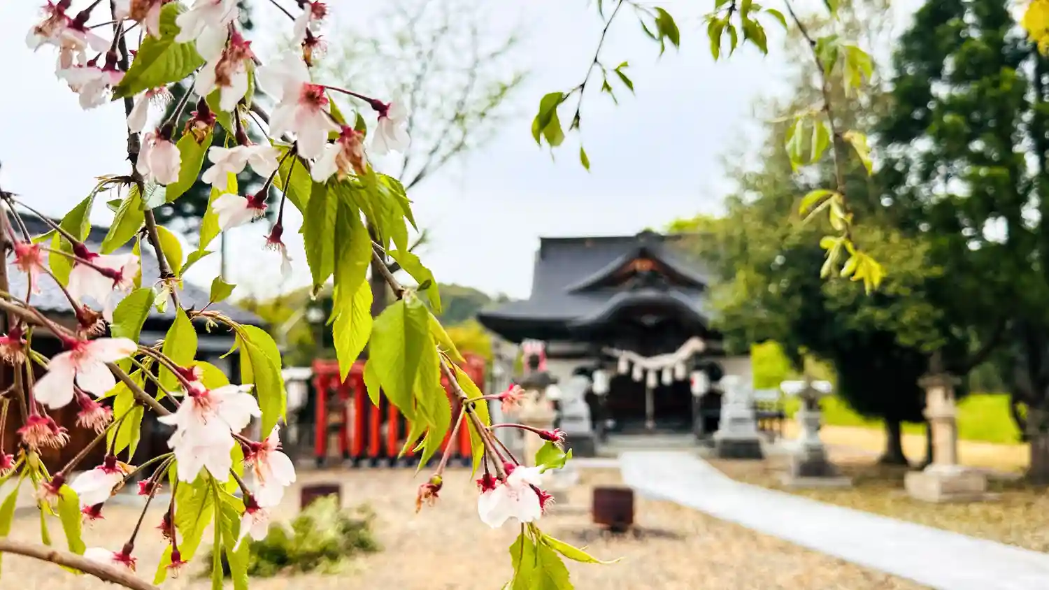 鳥居横の「楯縫神社のしだれ桜」がちょうど咲いていました、鳥居を抜けると正面に社殿があります 拝殿は…