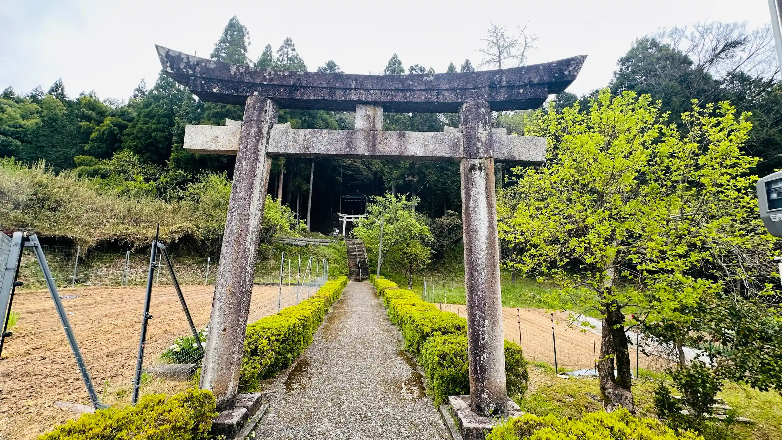 延喜式式内社です、本殿は、入母屋造柿葺 民家の間に参道があります 鳥居をくぐり、さらに参道を進み階段を上ると、もう一つの鳥居があり、さらに参道と階段を上ると、社殿のある境内へ、境内はさほど広くはありませんが、境内周りの木なども手が入れられています