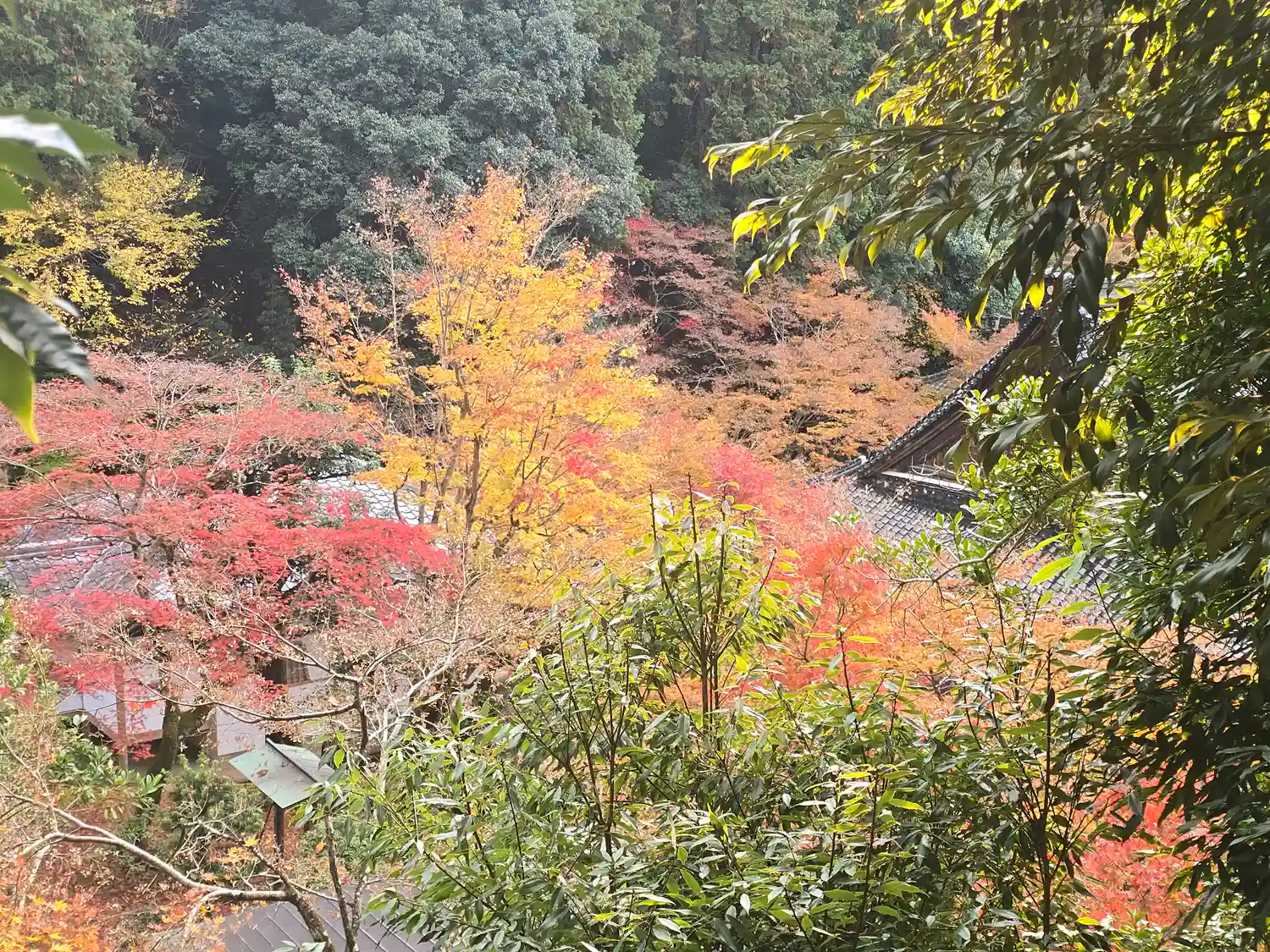 眺める鶴亀の庭の紅葉が見事でした。