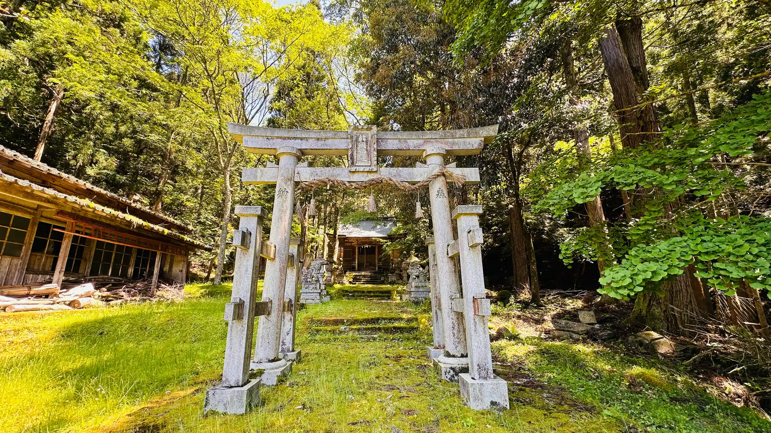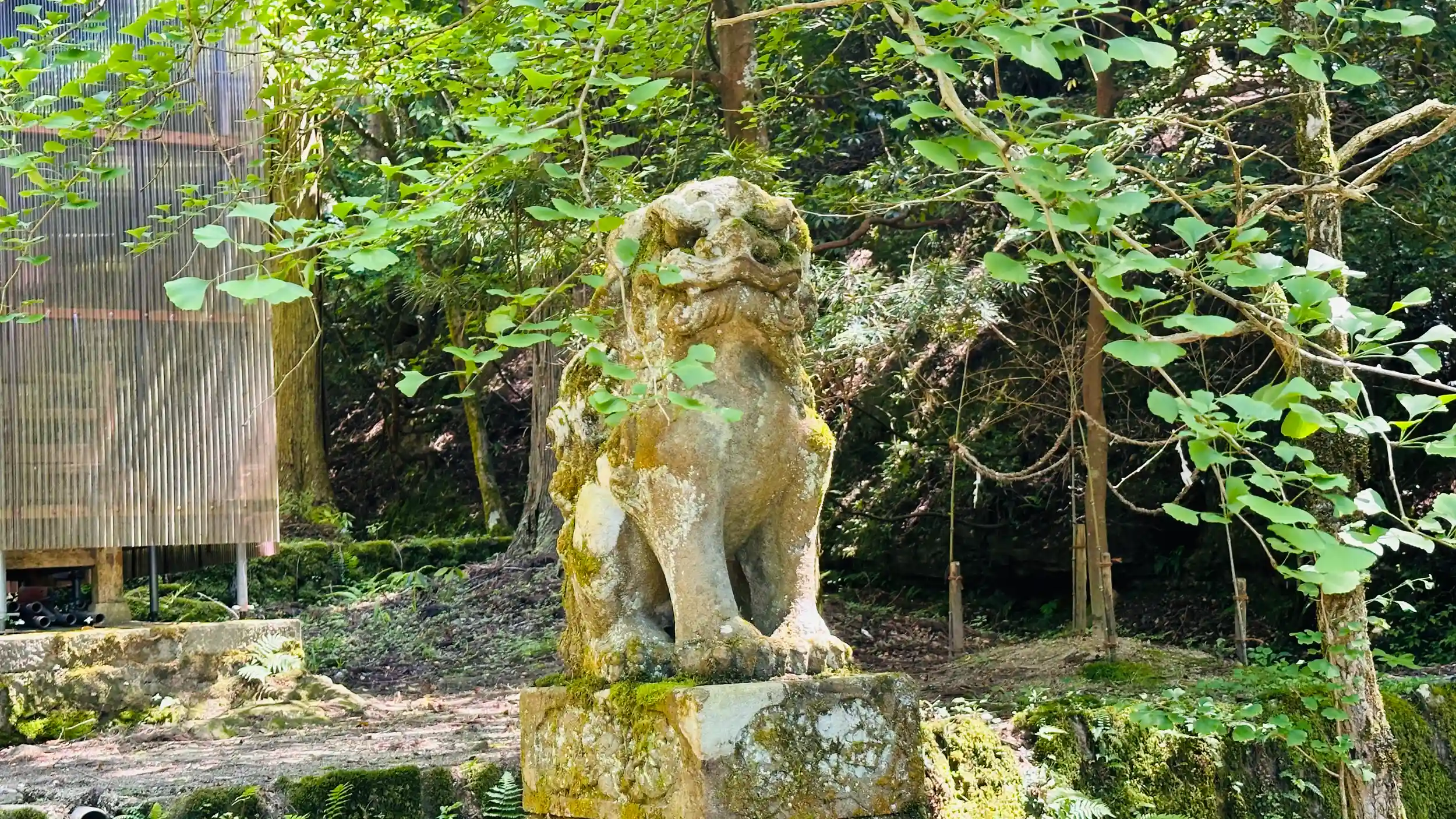 本殿は、入母屋造柿葺、蟇股の彫刻はコウノトリなのかもしれません。境内は苔がすごく綺麗でした。