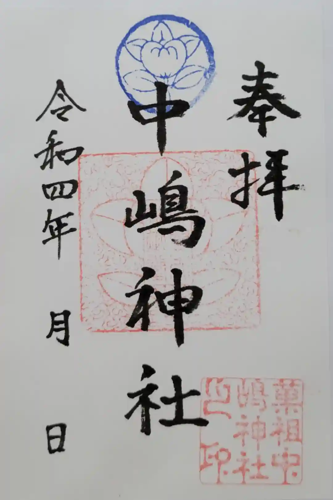 久しぶりに中嶋神社に参拝に来ました。社務所前に書置き御朱印が置かれています。